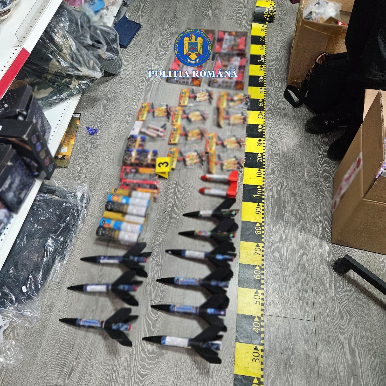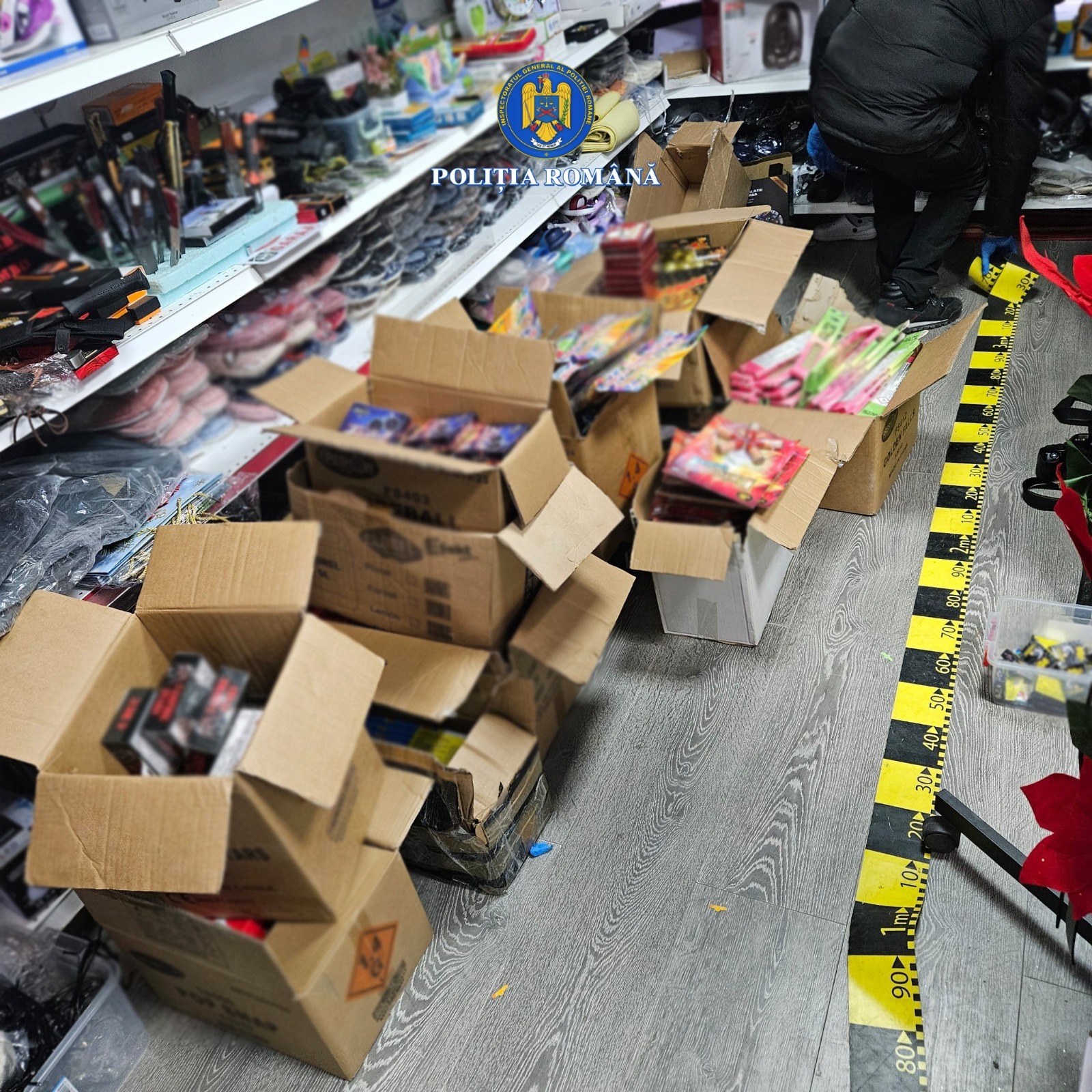 În cadrul activităților, polițiștii au descoperit și ridicat în vederea continuării cercetărilor, peste o tonă de articole pirotehnice din categoriile P1, F1, F3, și T1.
