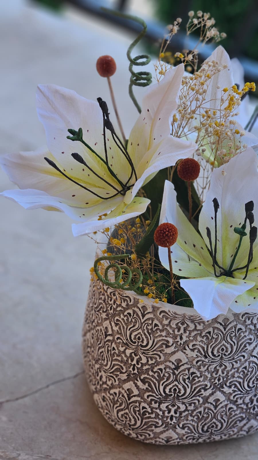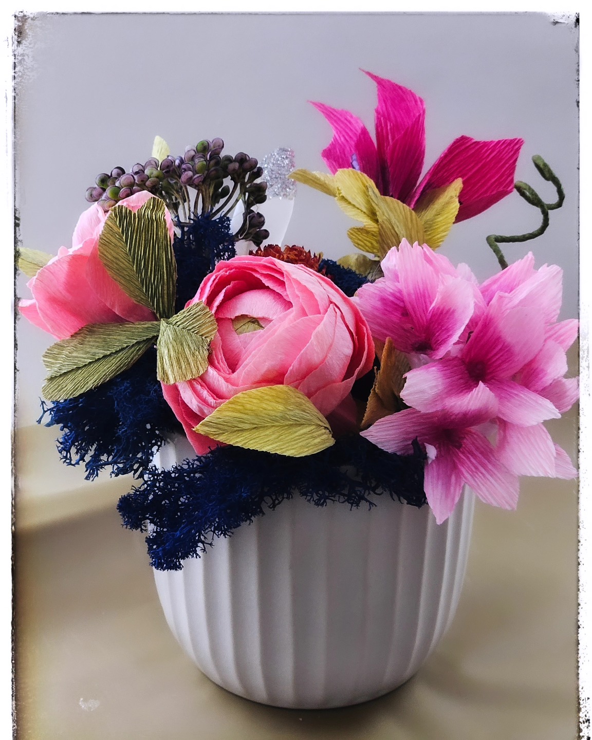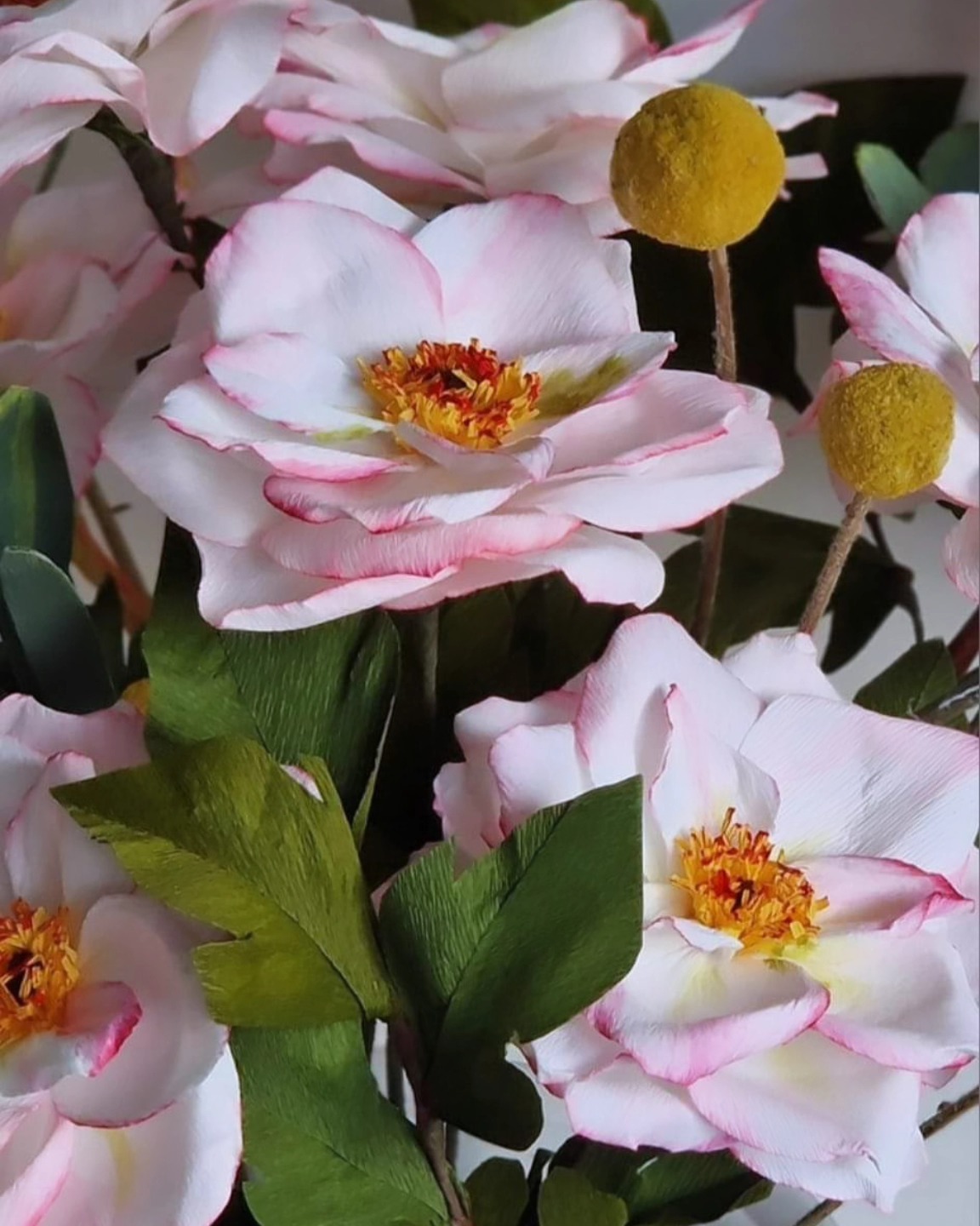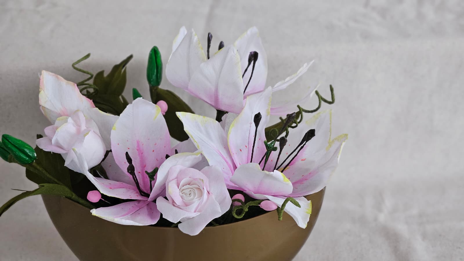 Din 2017 am început să urmez cursuri online cu artiști din România și Marea Britanie, învățând să creez pas cu pas flori cât mai aproape de cele reale. În primă fază a fost nevoia de a avea aranjamente frumoase, care rezistă mult timp, apoi a devenit momentul meu de relaxate. Momentul în care creez flori e ca o terapie.