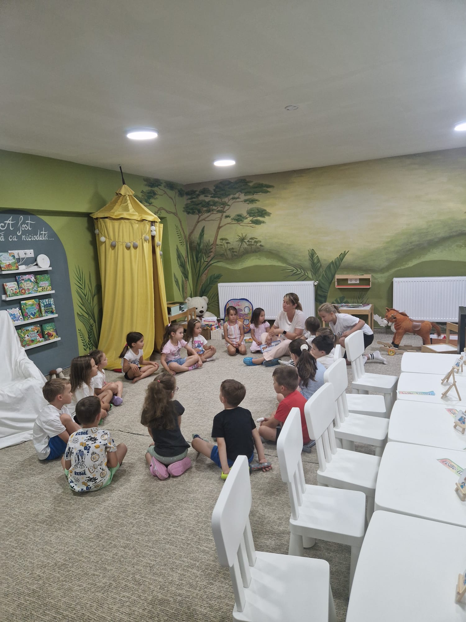 Atelierele se desfășoară într-un stil interactiv, bazat pe joacă, cântece, planșe și covorașe colorate, dar și muncă în echipă.