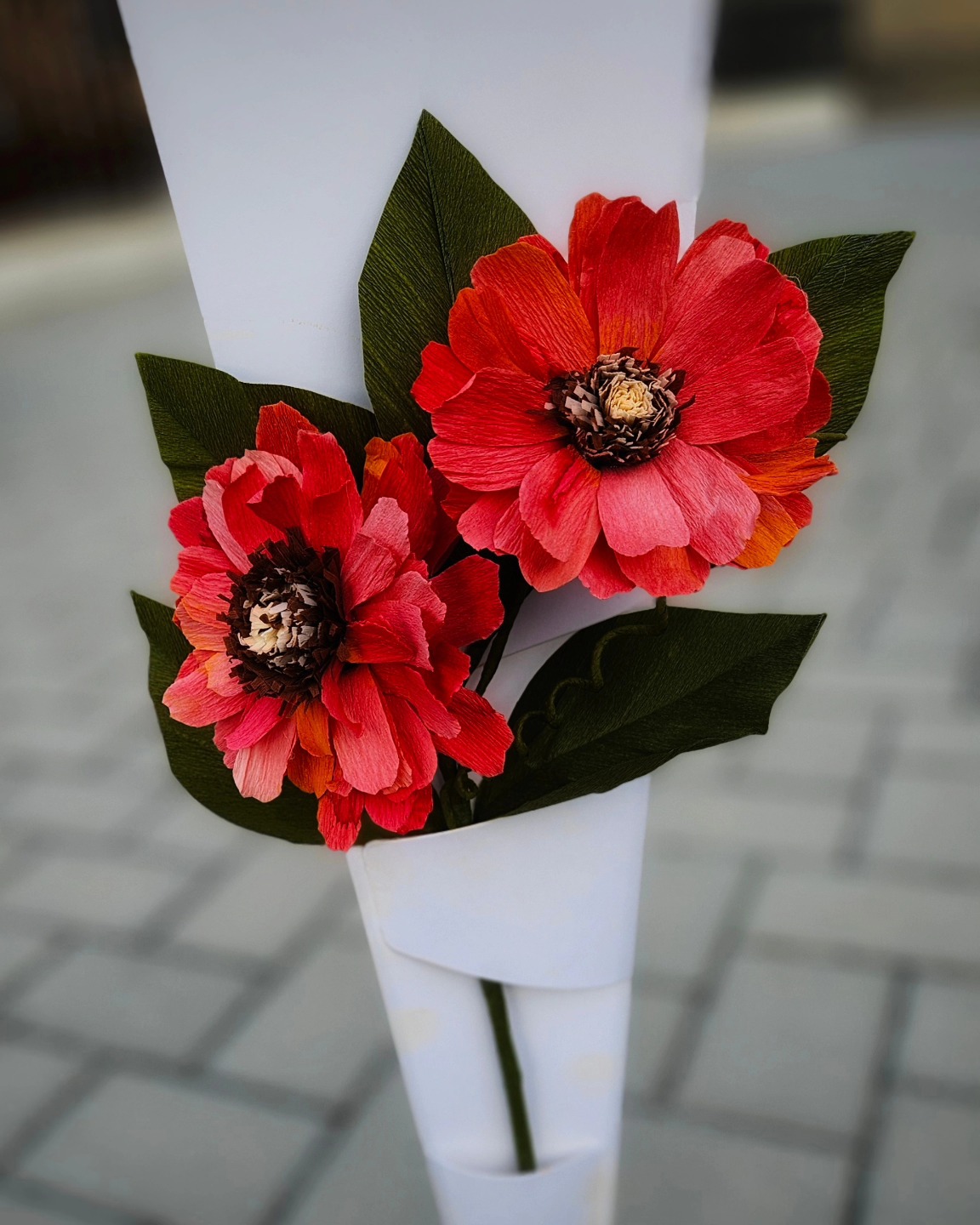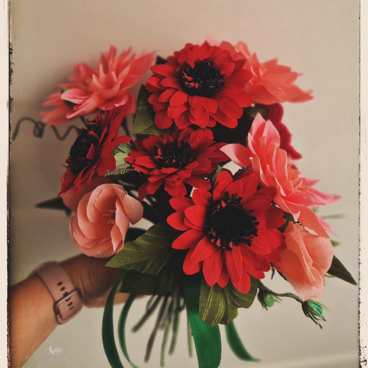 Timpul petrecut aici era prea scurt și nu putea cumpăra florile naturale la care visa și pe care să le lase apoi să se ofilească, așa că a comandat primele buchete din hârtie de la Andreea Mureșan, cea care se află în spatele Roselle Floral & Weddings din Bistrița, ce a devenit ulterior sursa sa de inspirație.