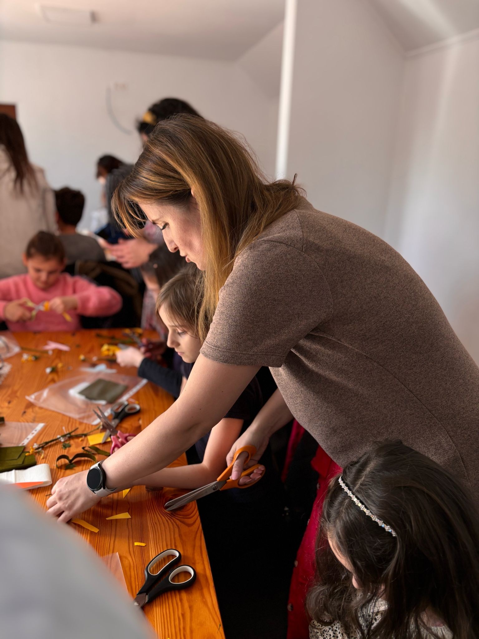 FOTO – Din Marea Britanie la Nepos: Crina Daroși, educatoarea care-i învață pe copii să transforme hârtia în artă