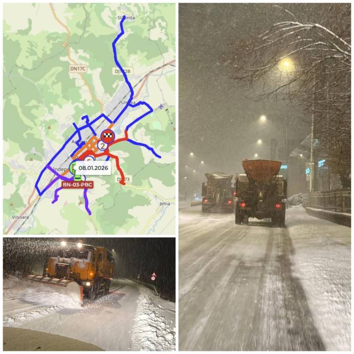 Utilajele de deszăpezire au parcurs peste 1.700 km pe raza orașului, în intervalul orar 00:00 – 10:30, acționând pentru curățarea zăpezii și combaterea poleiului. „Activitățile de deszăpezire și combatere a poleiului sunt asigurate în regie proprie, prin structurile aflate în subordinea administrației locale” – a precizat primarul Gabriel Lazany.