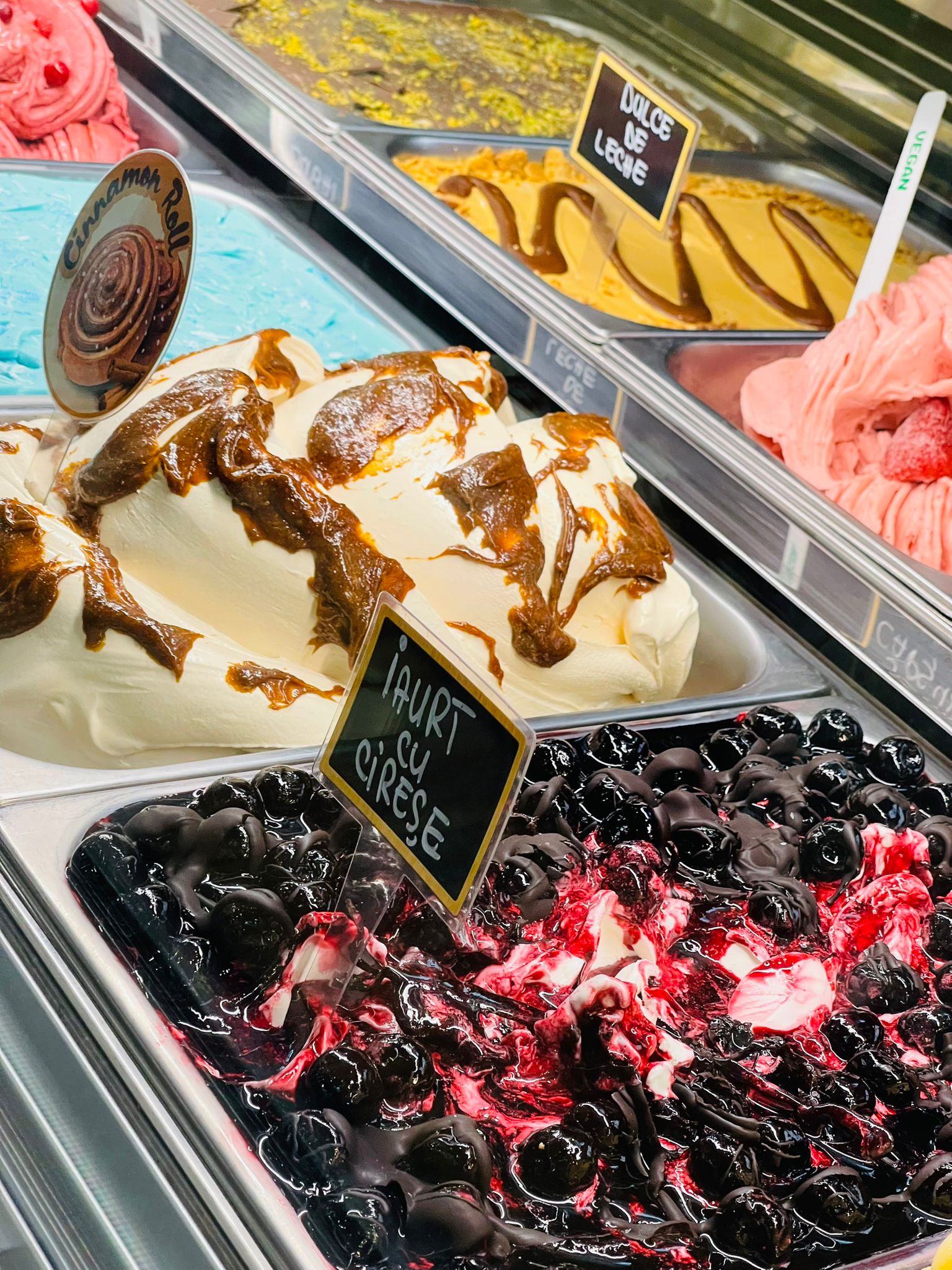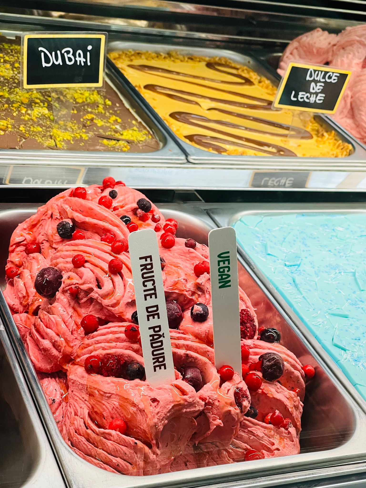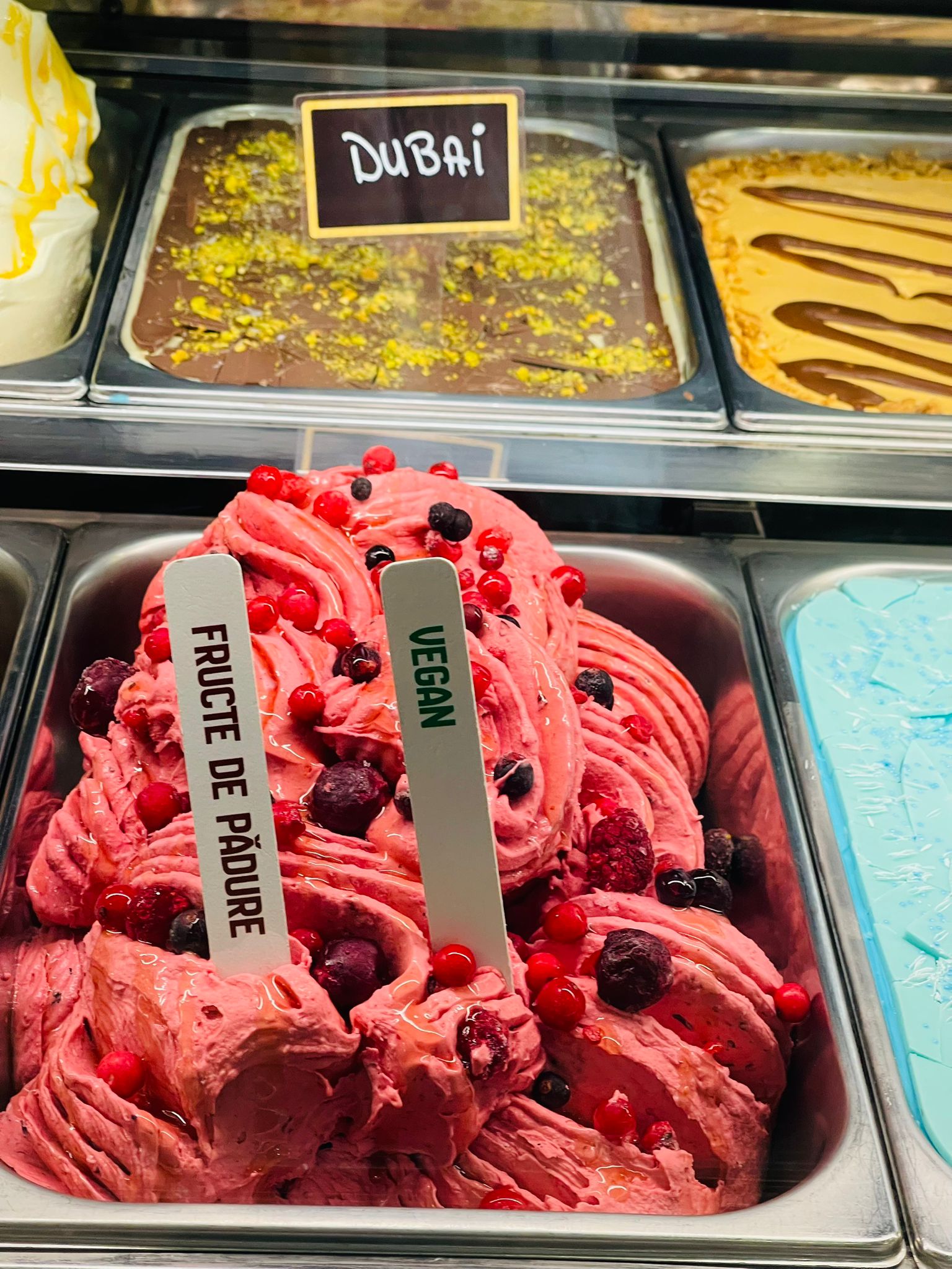 Din vitrină nu lipsesc nici celelalte sortimente cu care v-ați putut răsfăța și în anii trecuți, cum ar fi Cheesecake cu zmeură, Dubai (ciocolată, fistic, cataif) Nutella, Mango, Vanilie de Madagascar (făcută cu pastă naturală de vanilie de Madagascar), Iaurt cu Amarene (cireșe), Fructe de pădure, Pepene, Căpșună (fără zahăr) și preferata celor mici – Bubble Gum.