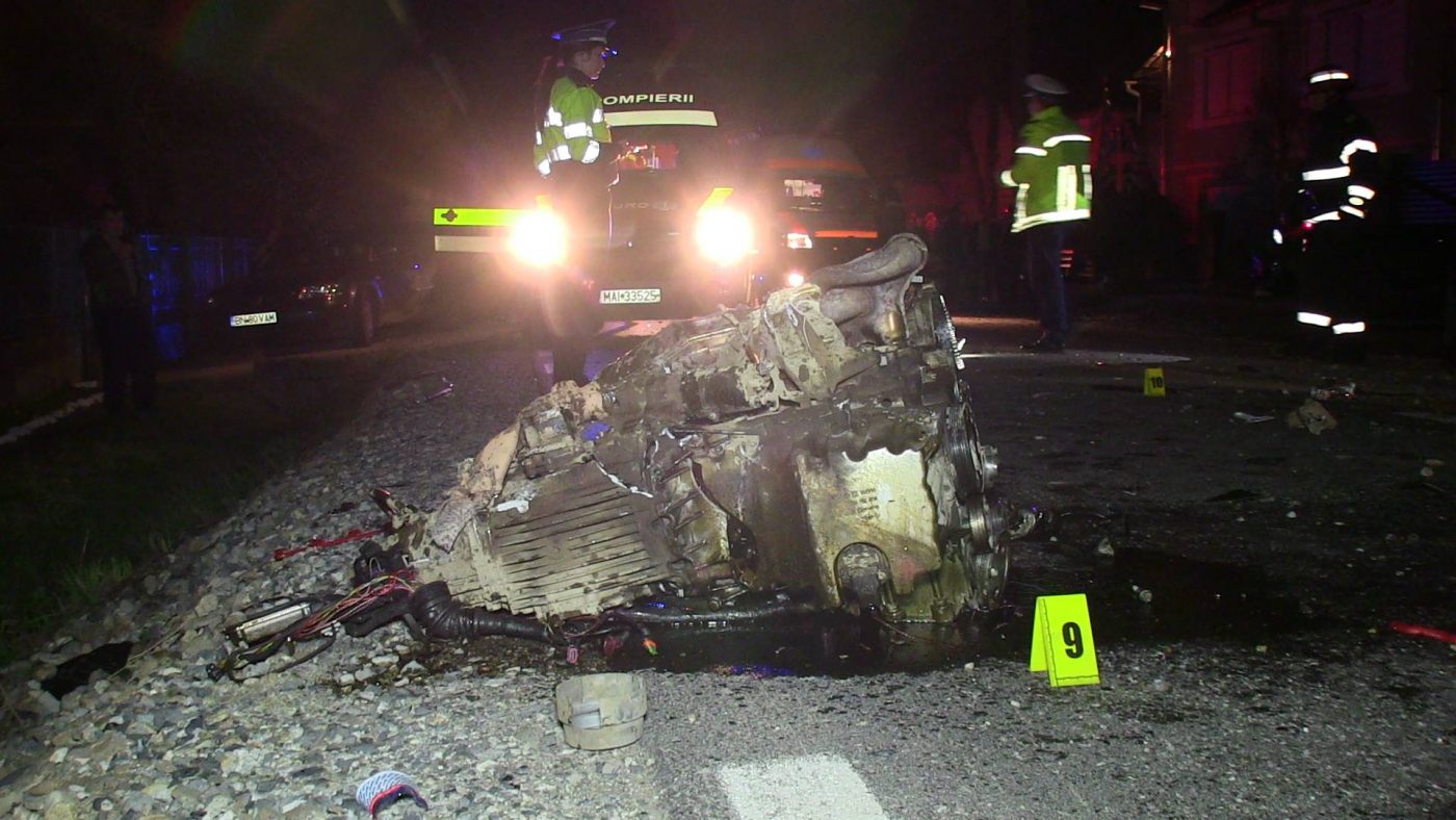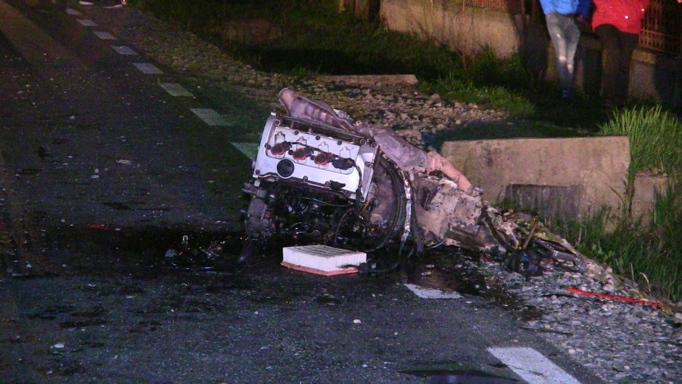 Judecând după impactul violent, autoturismul rula cu viteză. Impactul a fost atât de puternic, încât motorul autoturismului s-a desprins și a fost aruncat la câțiva metri buni. Autoturismul s-a transformat într-un morman de fiare.
