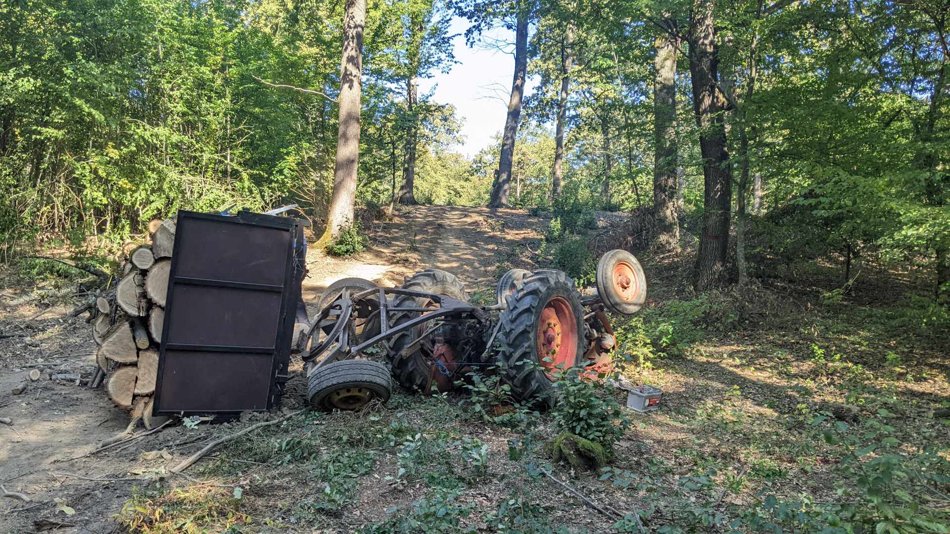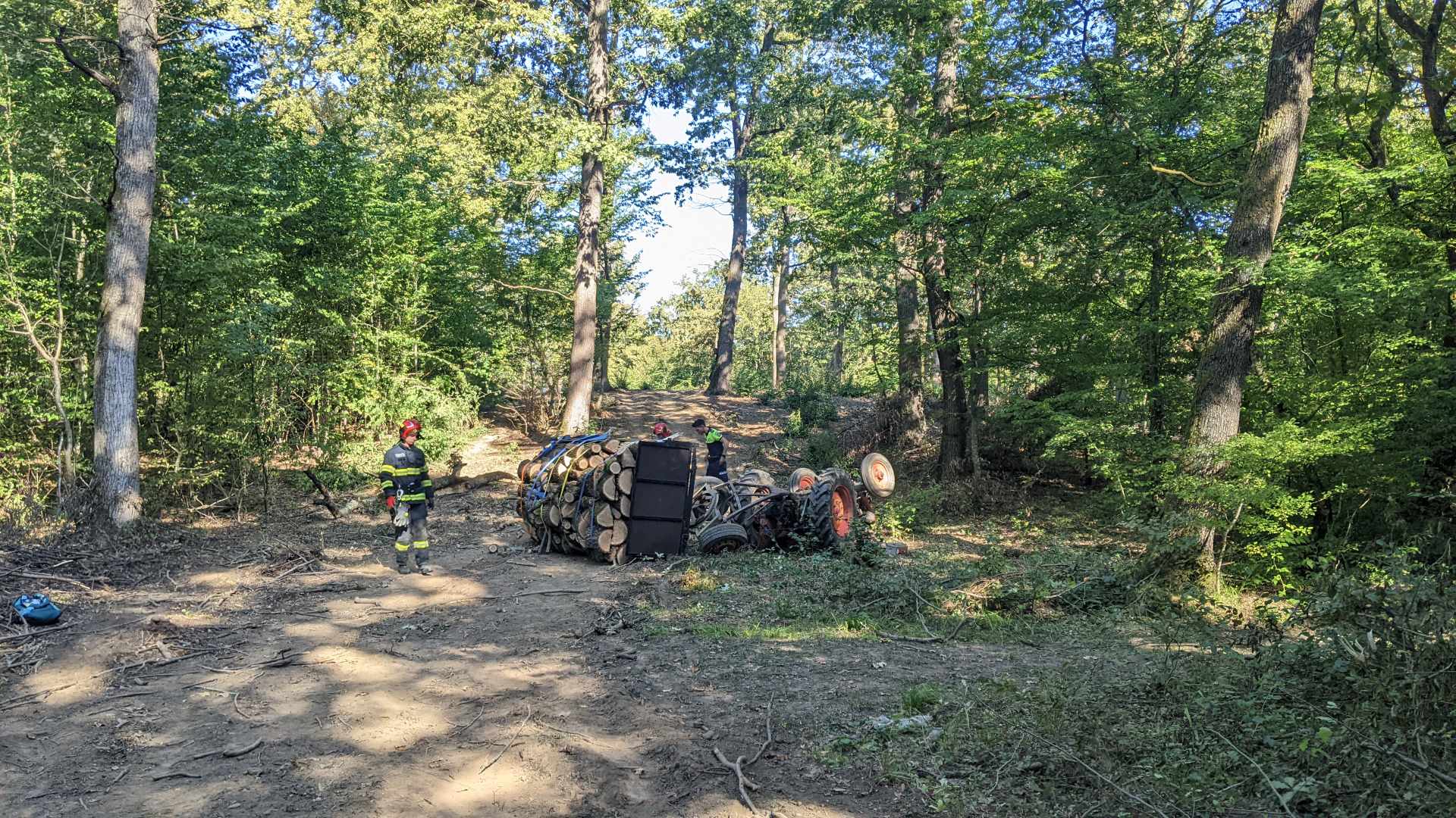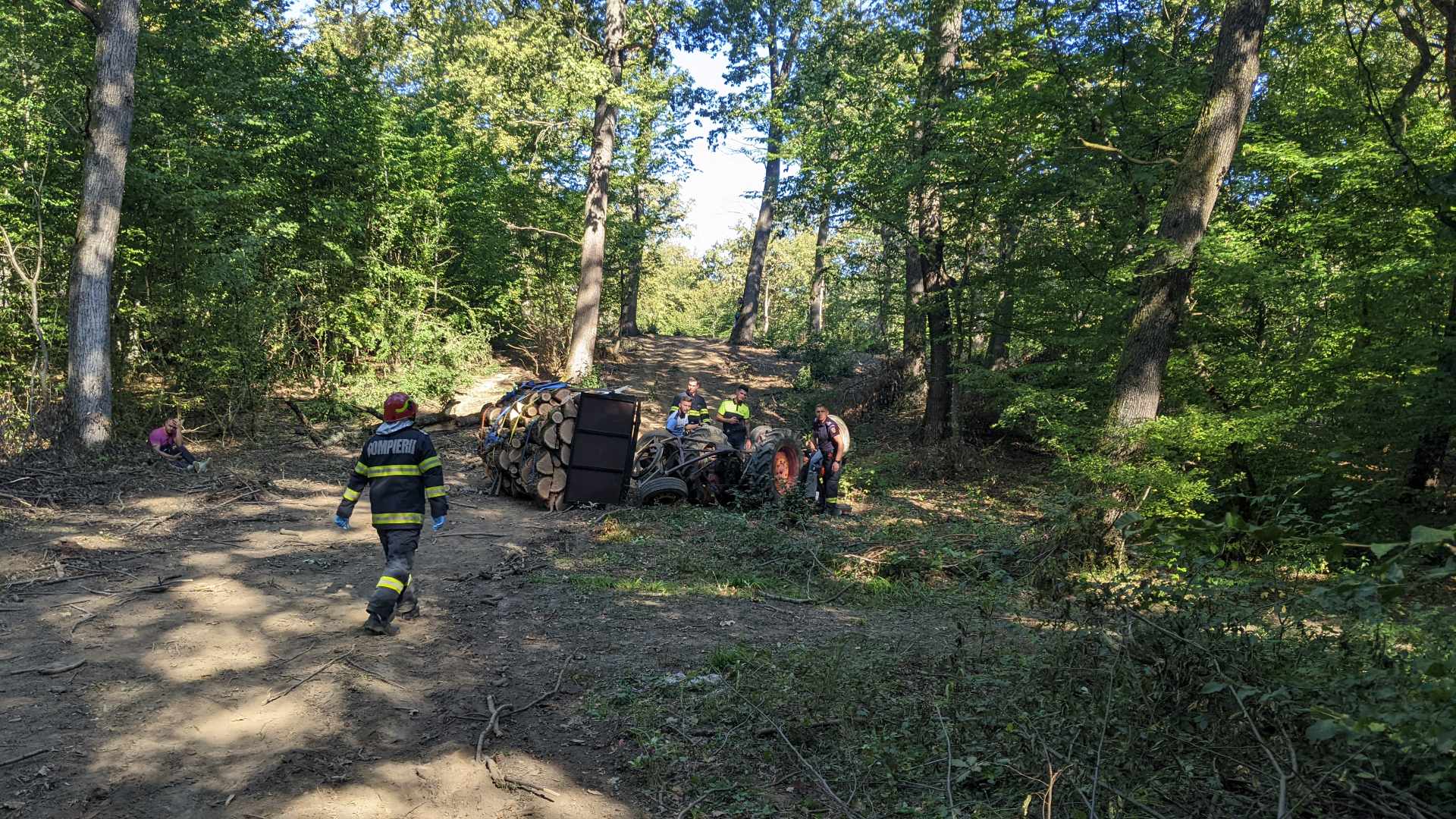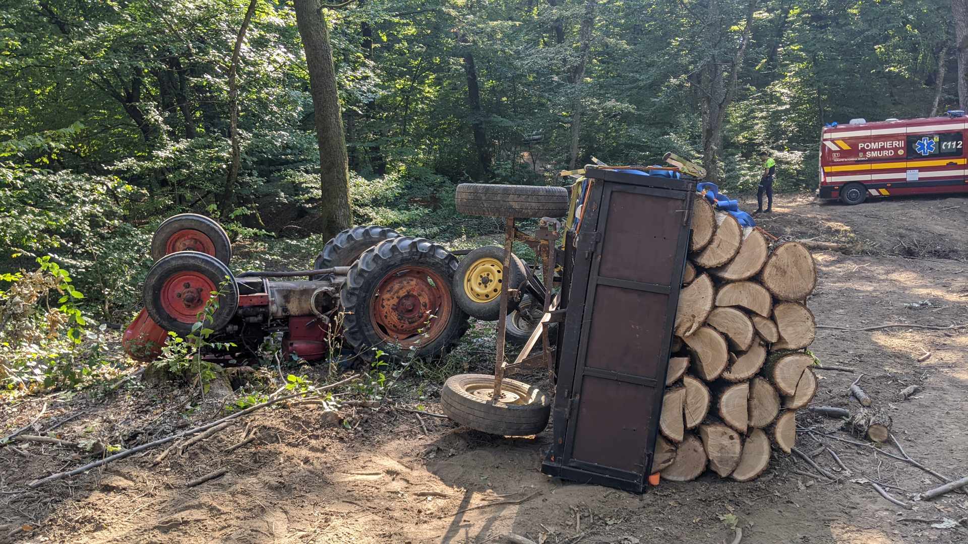 FOTO/VIDEO: Un bărbat este în stare gravă, după ce s-a răsturnat cu tractorul, în pădure
