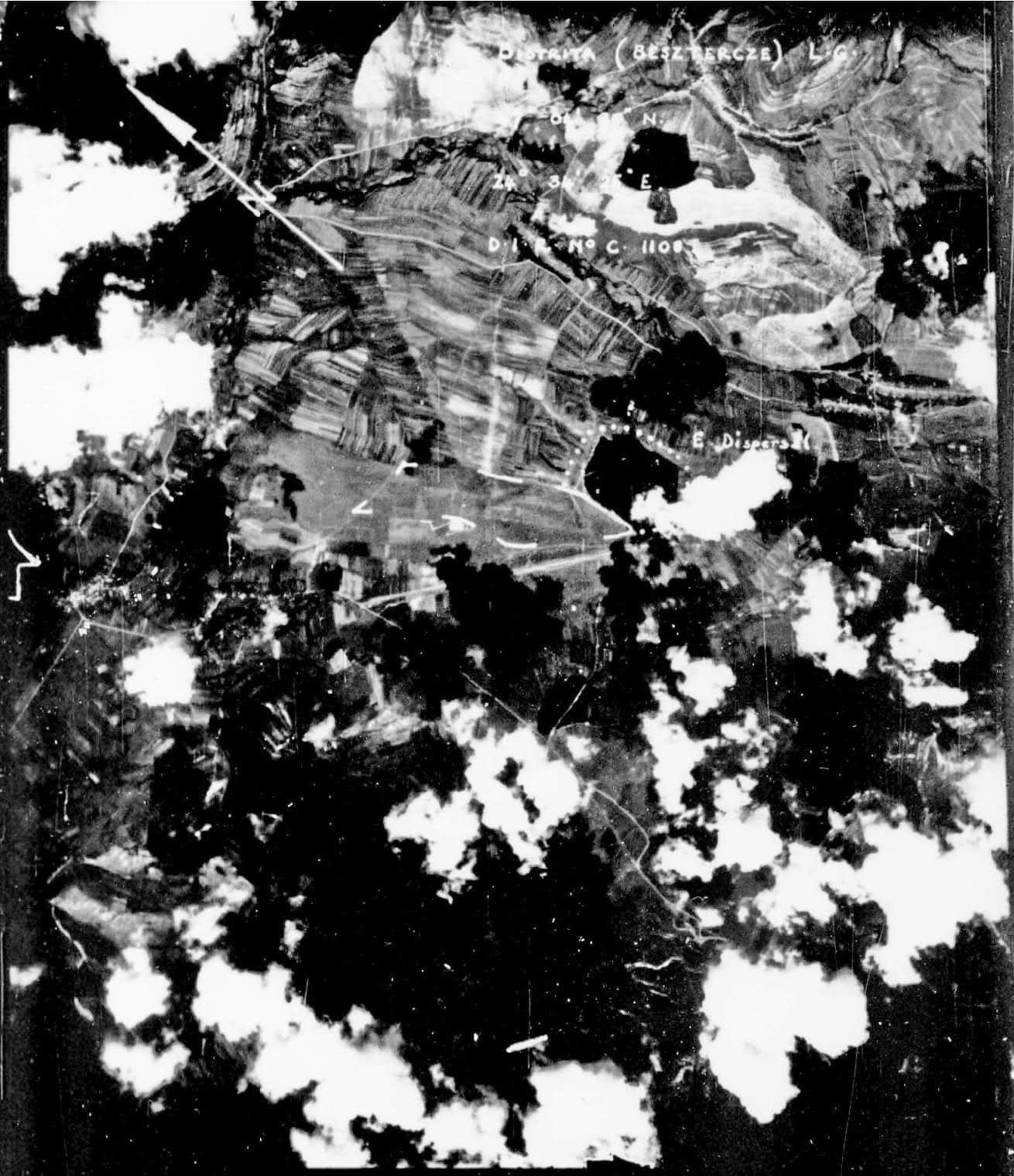 Există o fotografie aeriană realizată de piloții americani în 16 septembrie 1944, deasupra aerodromului înțesat de avioane germane. Zona avioanelor dispersate în jurul pădurii, este marcată prin cercuri albe. Erau, de asemenea, vizibile și șanțurile de asanare: