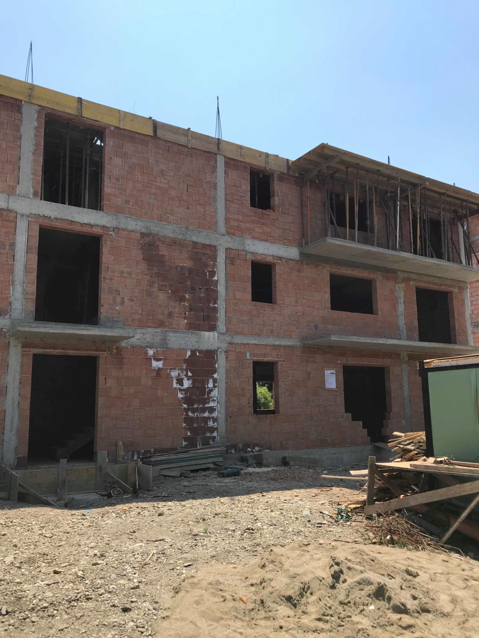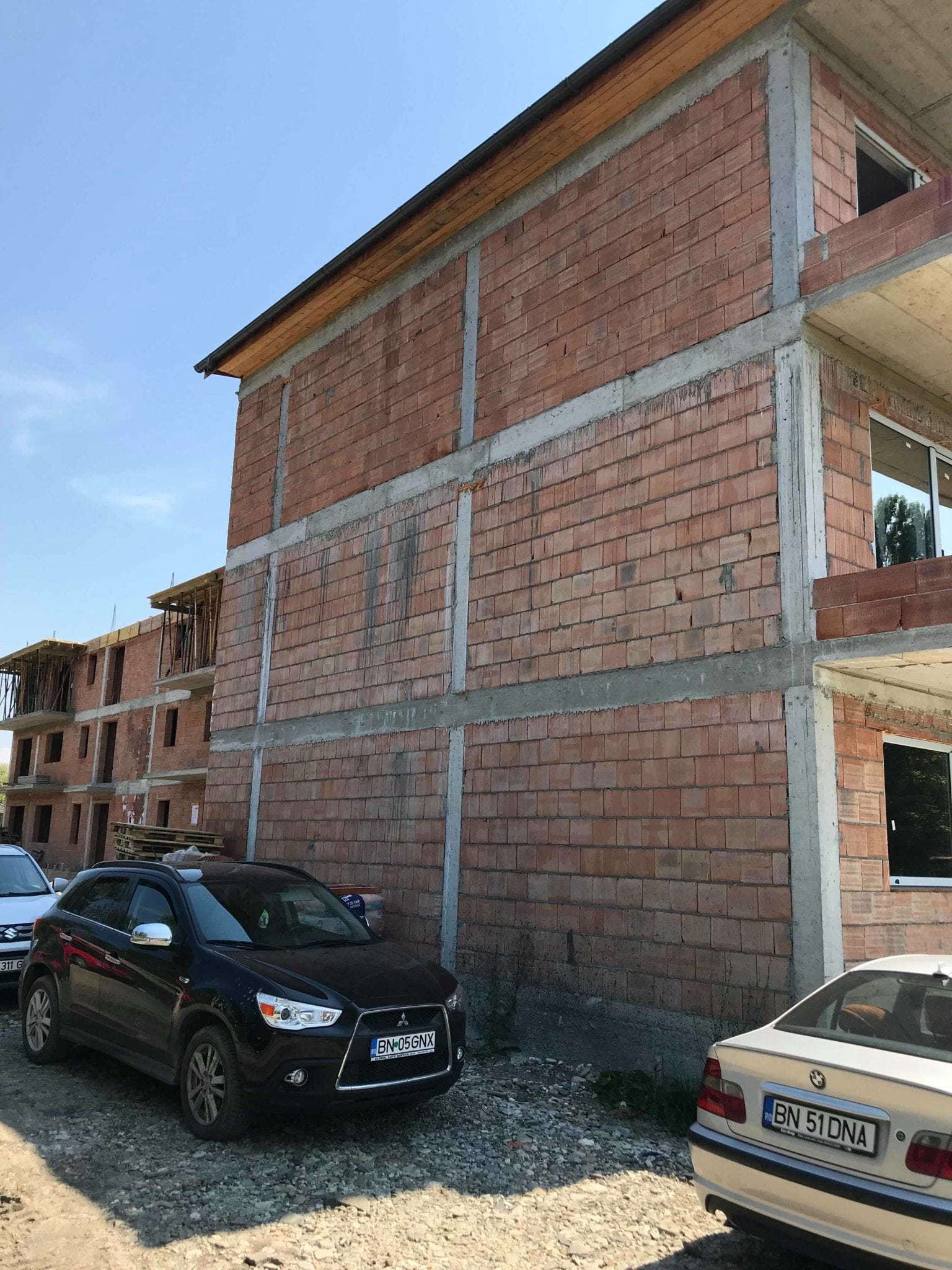 Pe strada Constantin Brăiloiu din Bistrița, echipele Amicii Building lucrează astăzi la finalizarea primului bloc din cele trei ale ansamblului rezidențial, care urmează a fi finalizat în toamnă.