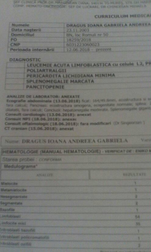 Vestea bună e, așa cum am scris și AICI, că boala e tratabilă. Trebuie donat sânge și trombocite ca să o ajute să-și revină.