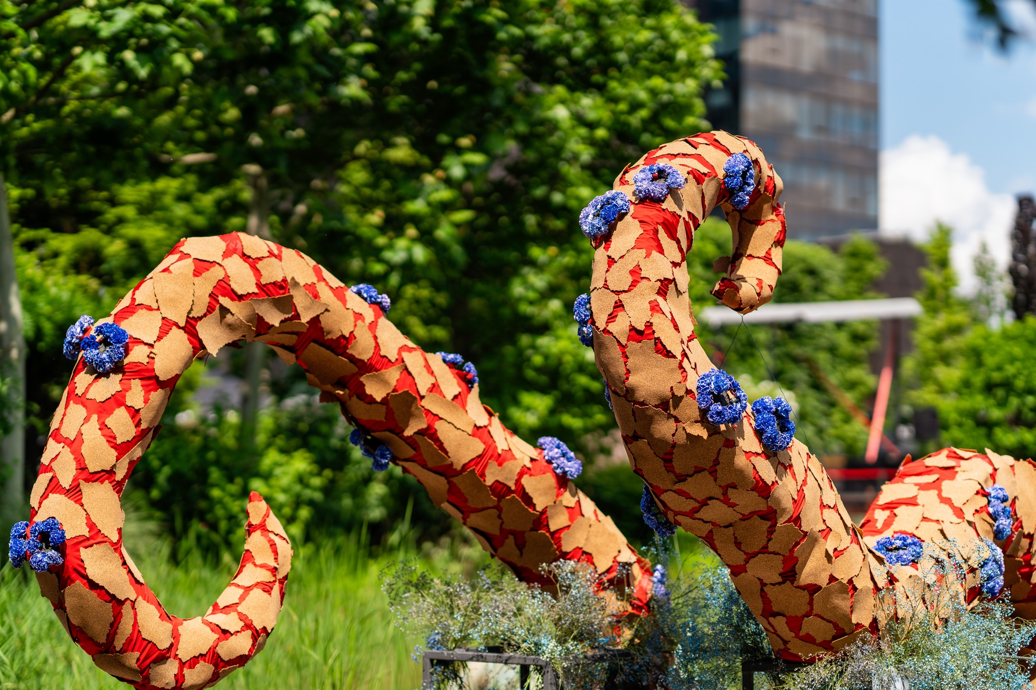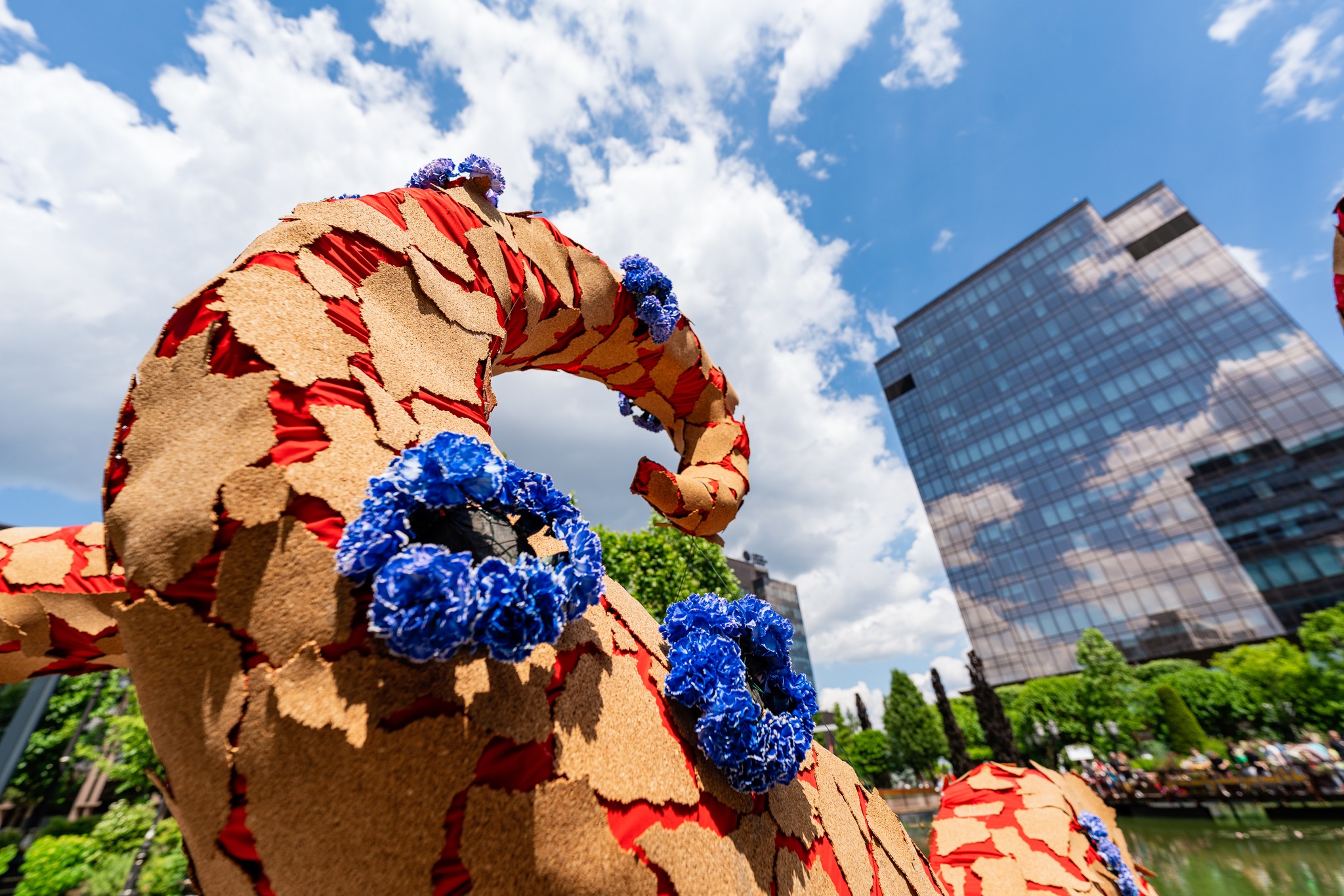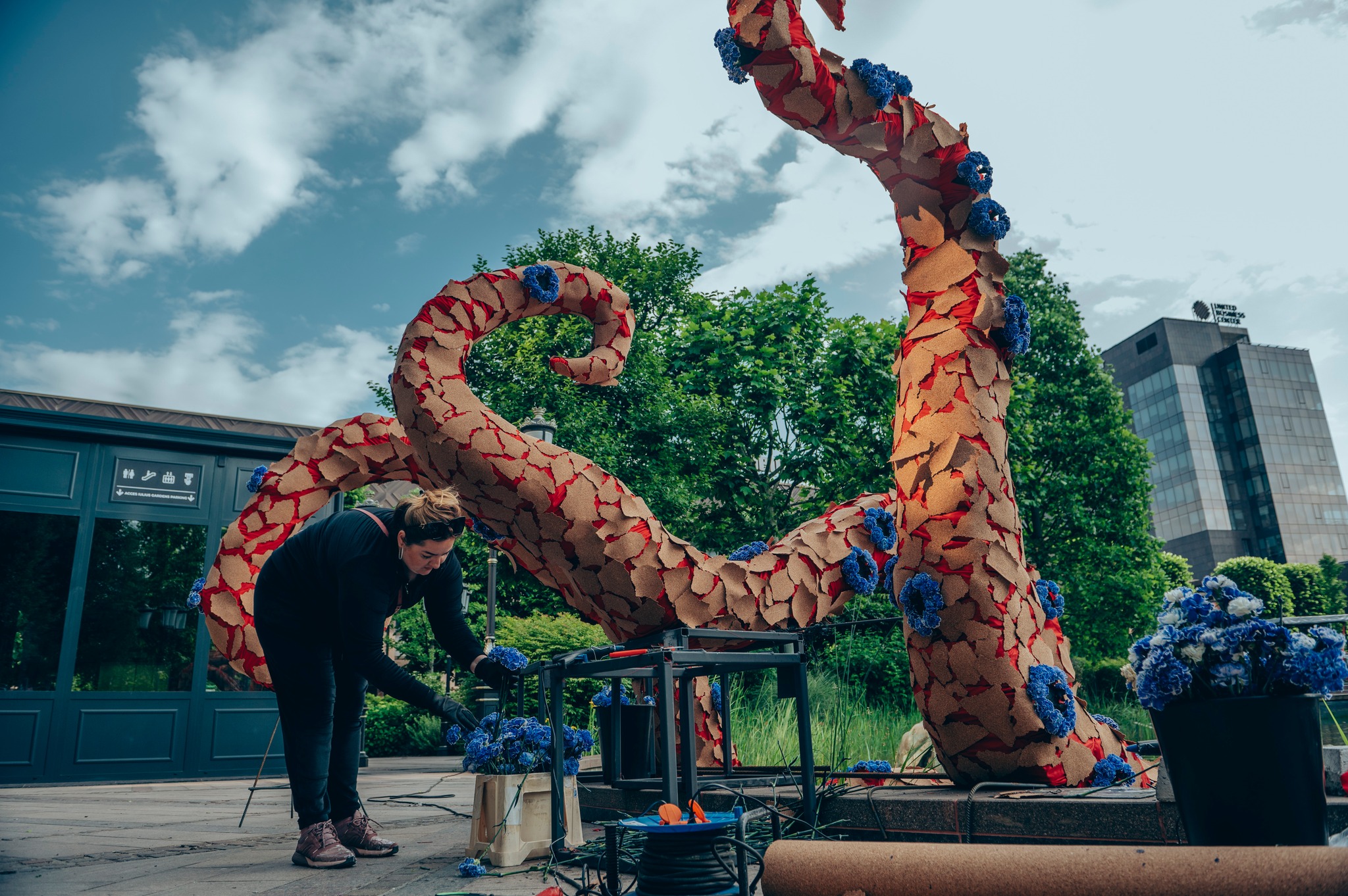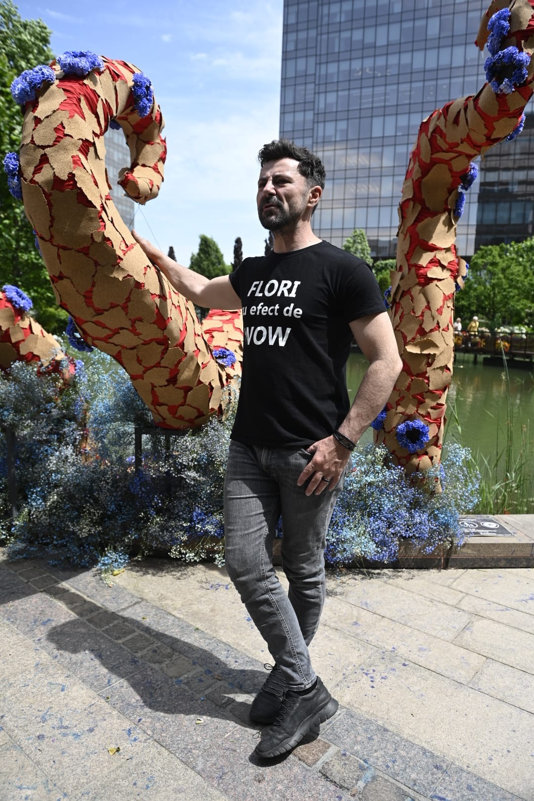 Artistul Andrei Bindea a făcut spectacol cu un „monstru marin” din flori