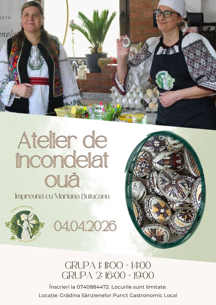 Dacă vreți să învățați mai multe despre încondeiatul ouălor, despre istoria sau tehnica acestei tradiții – nu trebuie decât să profitați de ocazie. Punctul Gastronomic Local Grădina Sânzienelor va găzdui un atelier special, susținut de un meșteșugar din Bucovina.