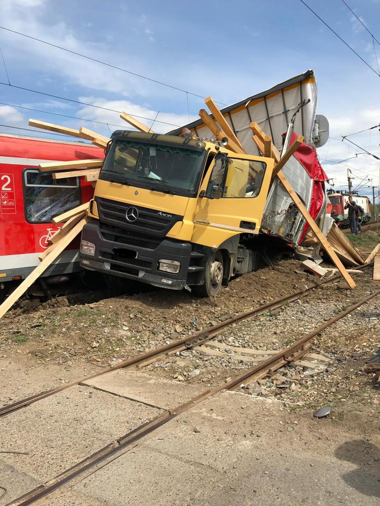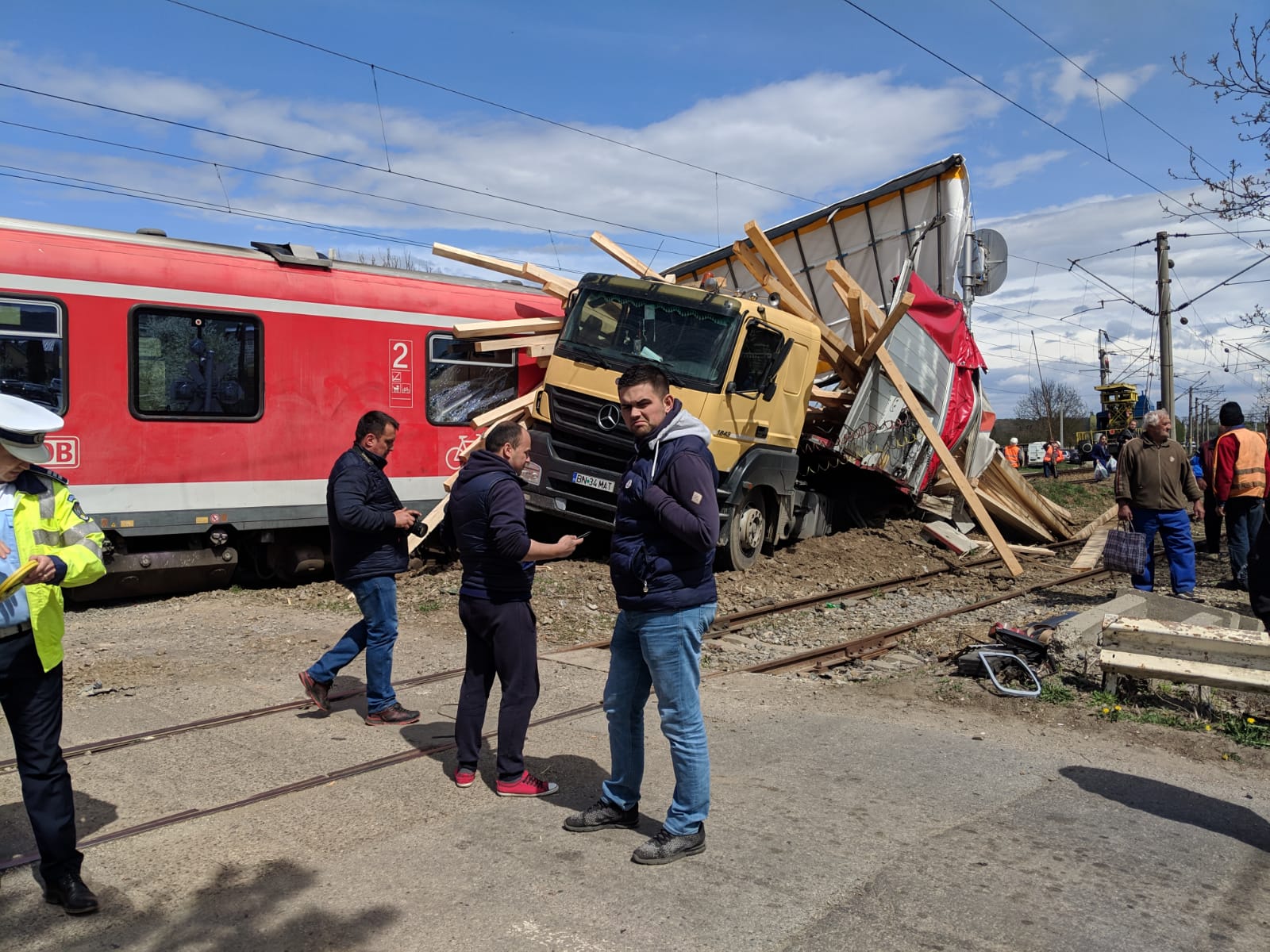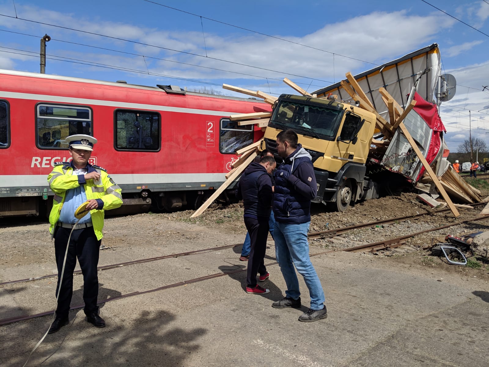 Potrivit ISU Bistrița, TIR-ul transporta material lemnos, iar la o primă evaluare medicală, șoferul TIR-ului nu prezintă leziuni. În acest moment sunt evaluate persoanele din tren.