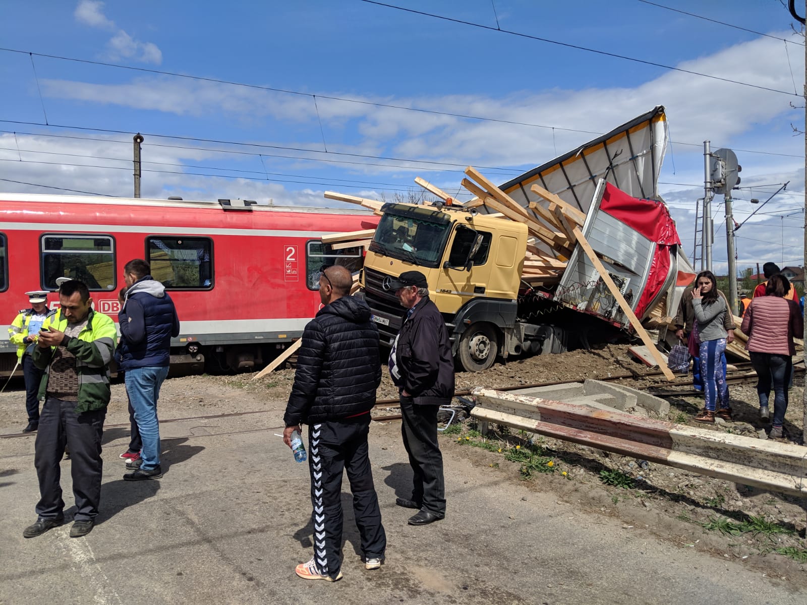 90 de persoane au trăit astăzi, la prânz, spaima vieții lor. Trenul în care se aflau a lovit un TIR încărcat cu material lemnos. Incidentul s-a petrecut în Beclean, la trecerea de cale ferată spre Nușeni. Printre călători se numără și 17 copii.