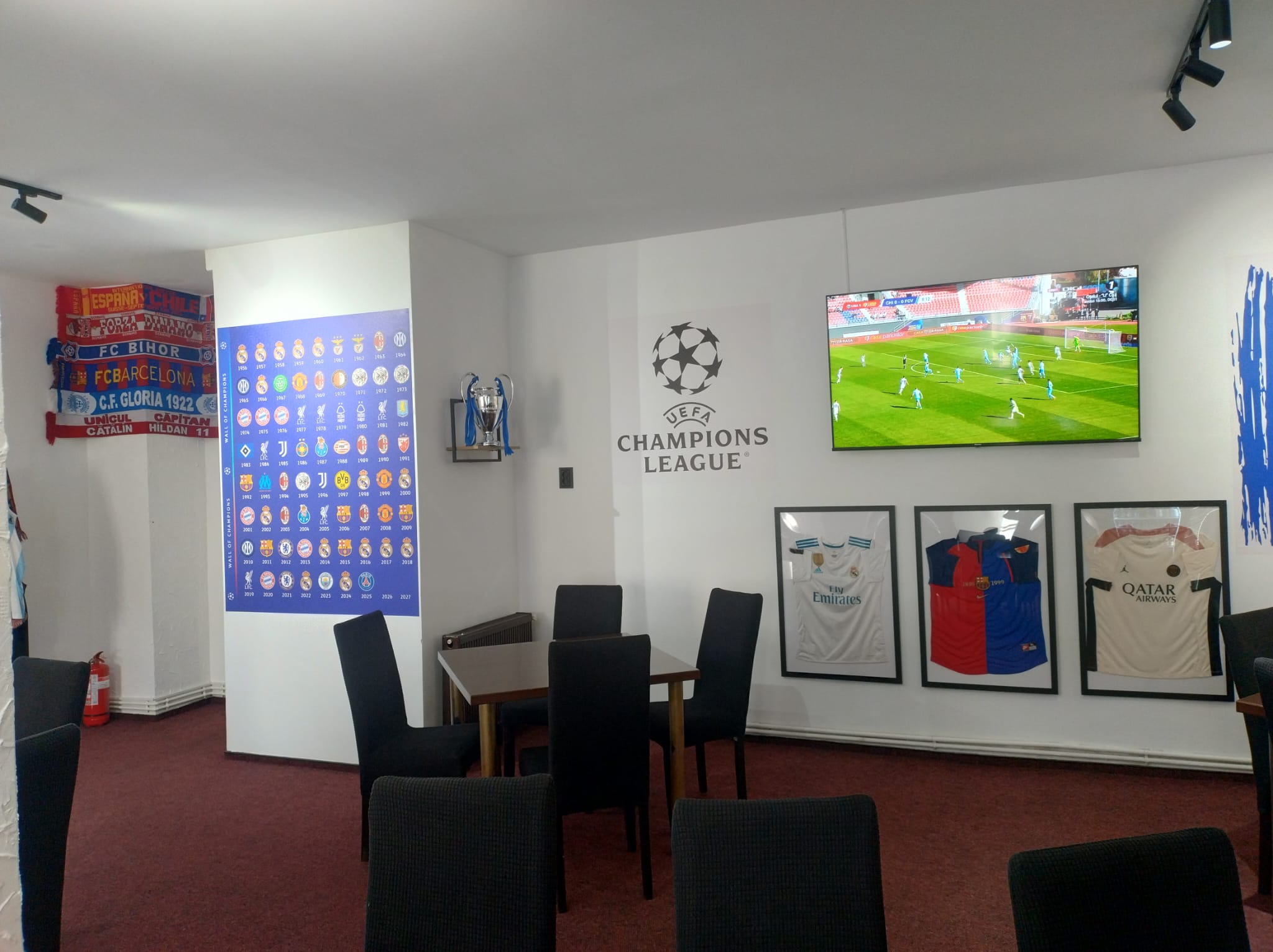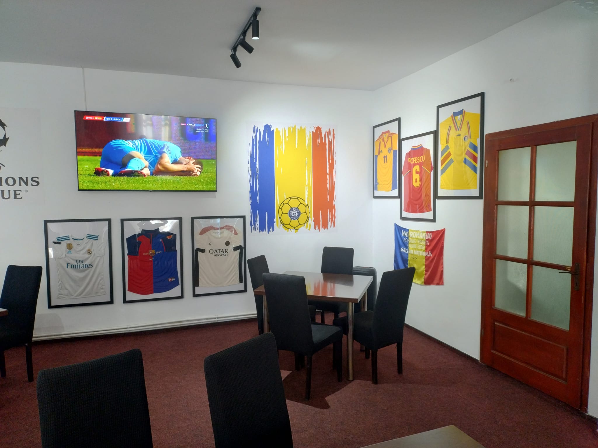 Aici puteți urmări meciurile alături de gașca voastră de prieteni, pe un ecran mare, savurând o bere rece și chipsuri, și să vă simțiți ca pe stadion.