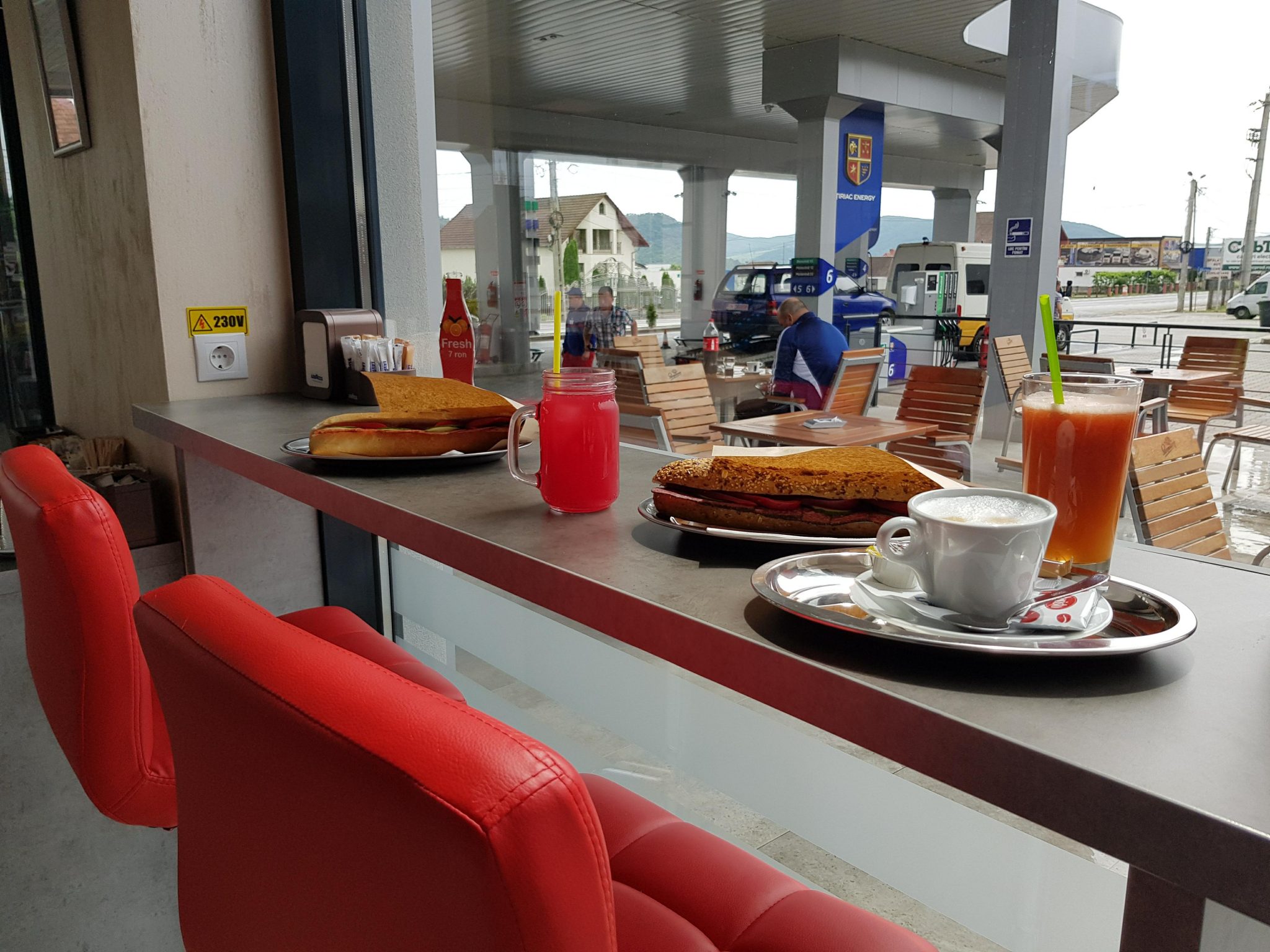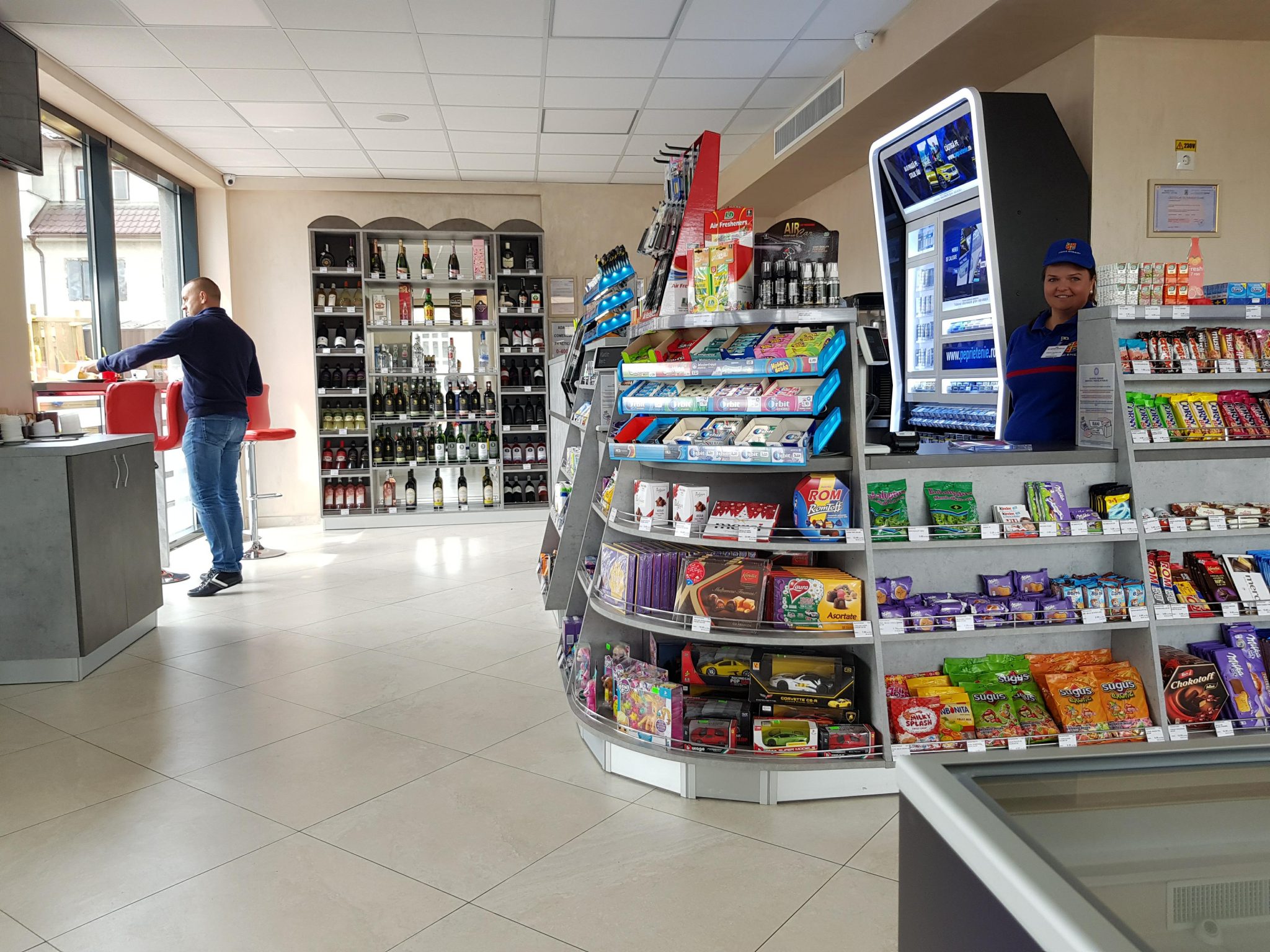 Pe lângă toată gama de carburanți oferită clienților, puteți face un popas pe drumul vostru dacă simțiți nevoia să vă bucurați de o cafea bună Lavazza sau dacă v-a prins foamea și vreți un sandwich proaspăt. Cu doar 7 lei primiți un fresh proaspăt, numai bun pentru copii, iar limonada rece, cu gheață, o veți găsi aici toată vara. Toate le puteți savura pe terasa benzinăriei, iar copiii se pot juca liniștiți, în tot acest timp, la locul de joacă special amenajat pentru ei. Din magazinul benzinăriei puteți cumpăra o gamă diversă de sucuri sau snack-uri pentru drum, băuturi alcoolice și vinuri (aici găsiți inclusiv noile vinuri ale Cramei Jelna, din producția 2018).