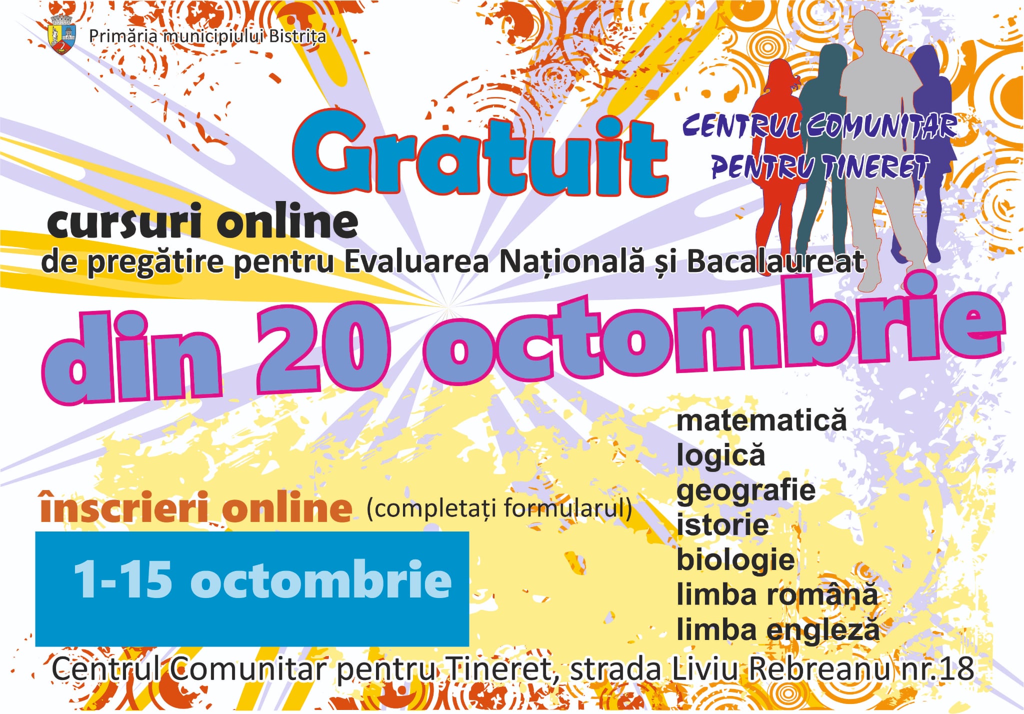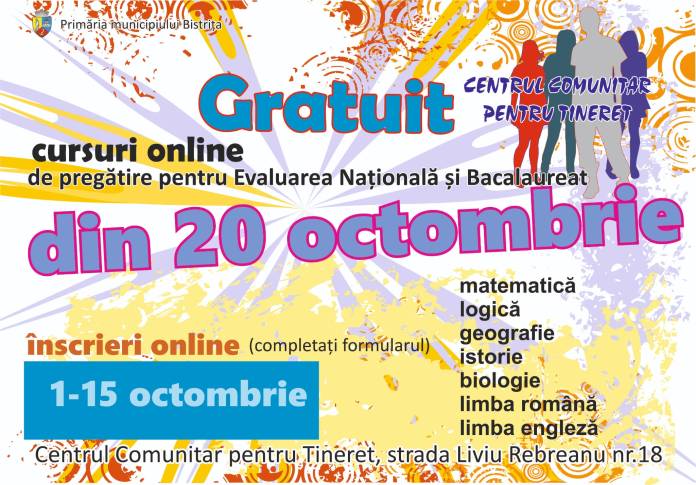 Începând de astăzi, elevii de clasa a VIII-a sau a XII-a din Bistrița pot să se înscrie la cursurile de pregătire pentru Evaluarea Națională și Bacalaureat. Cursurile sunt gratuite și se desfășoară online.