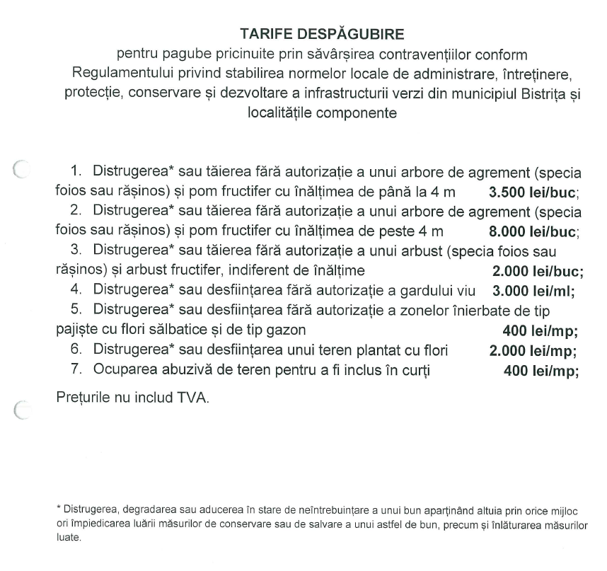 - Depozitarea mașinilor sau pieselor auto pe spațiile verzi