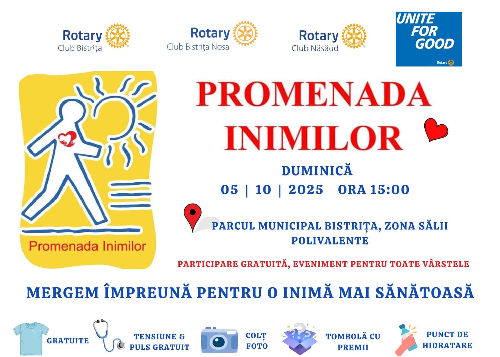 Promenada Inimilor – Bistrița 2025 este un eveniment dedicat prevenției bolilor cardiovasculare prin mișcare, comunitate și conștientizare.