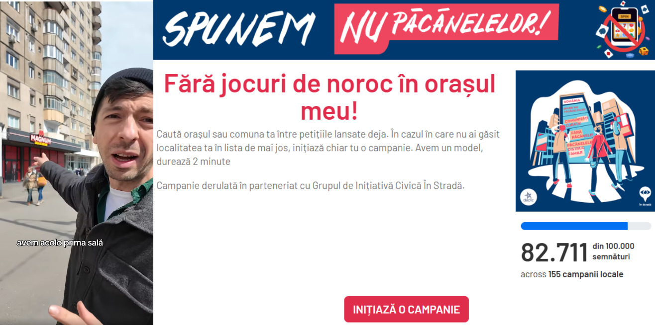 „Fără jocuri de noroc în orașul meu” – este o petiție cu format tipizat, care poate fi adaptată pentru fiecare oraș sau comună.