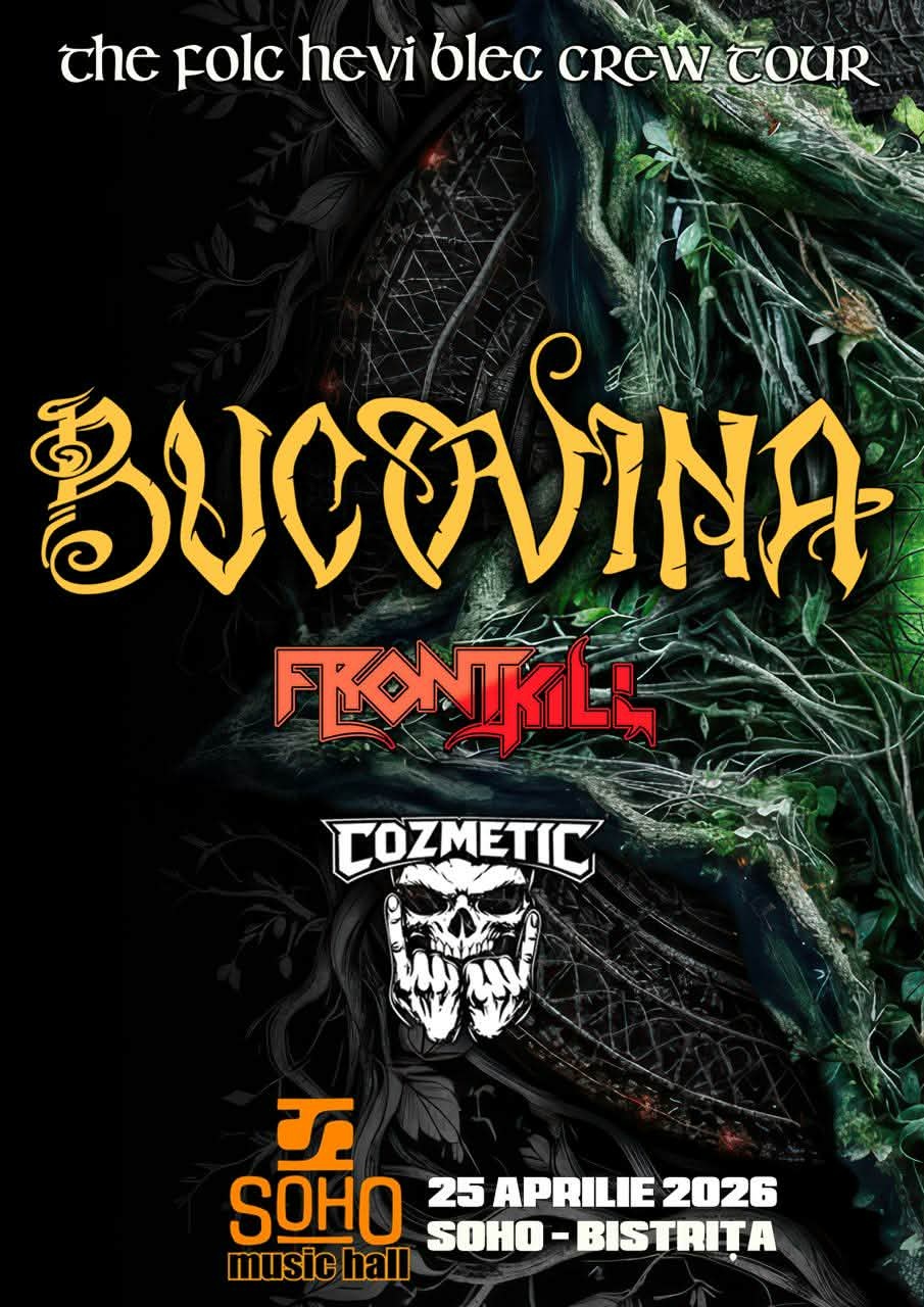 Turneul Bucovina – The Folc Hevi Blec Crew 2026 – continuă cu un show de pomină în Bistrița, la Soho Music Hall! În deschidere, concertează bistrițenii de la Frontkill și Cozmetic. Biletele vor fi disponibile doar la intrare.