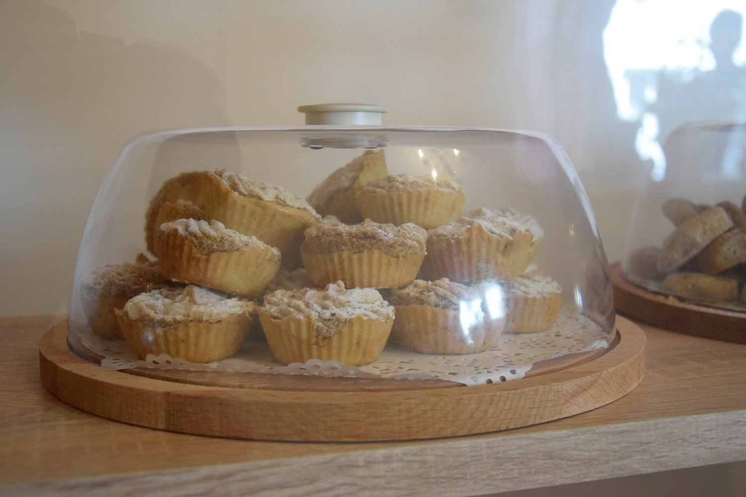 Apoi, cu drag, au gătit, și gătesc zilnic, cornulețe fragede cu gem, sărățele/saleuri, nuci umplute, rulouri cu cremă de vanilie, plăcinte, prăjituri etc. Toate produsele sunt proaspete, făcute zilnic, din ingrediente naturale, cu unt sau untură, fără chimicale adăugate, pentru a păstra gustul autentic.
