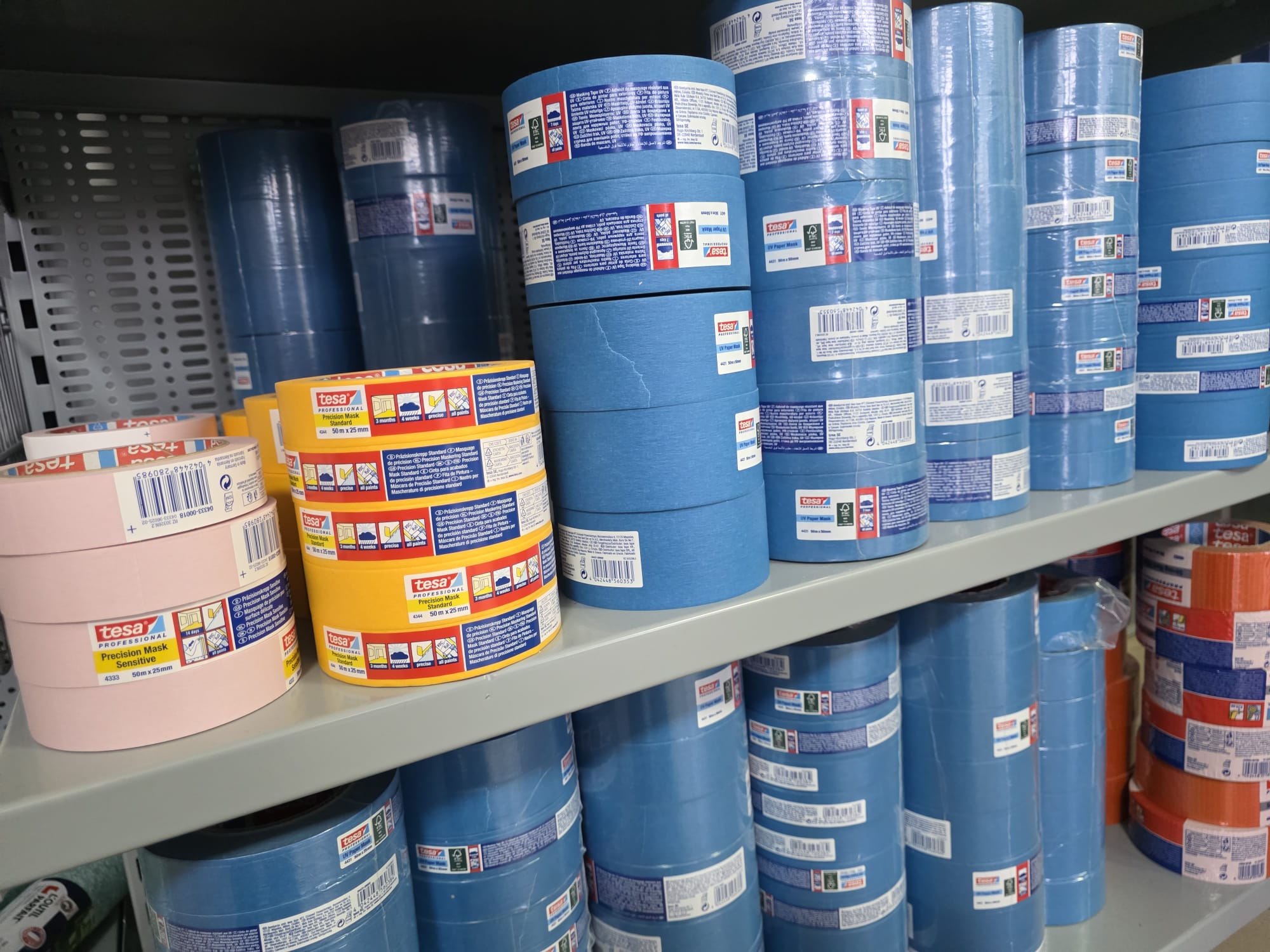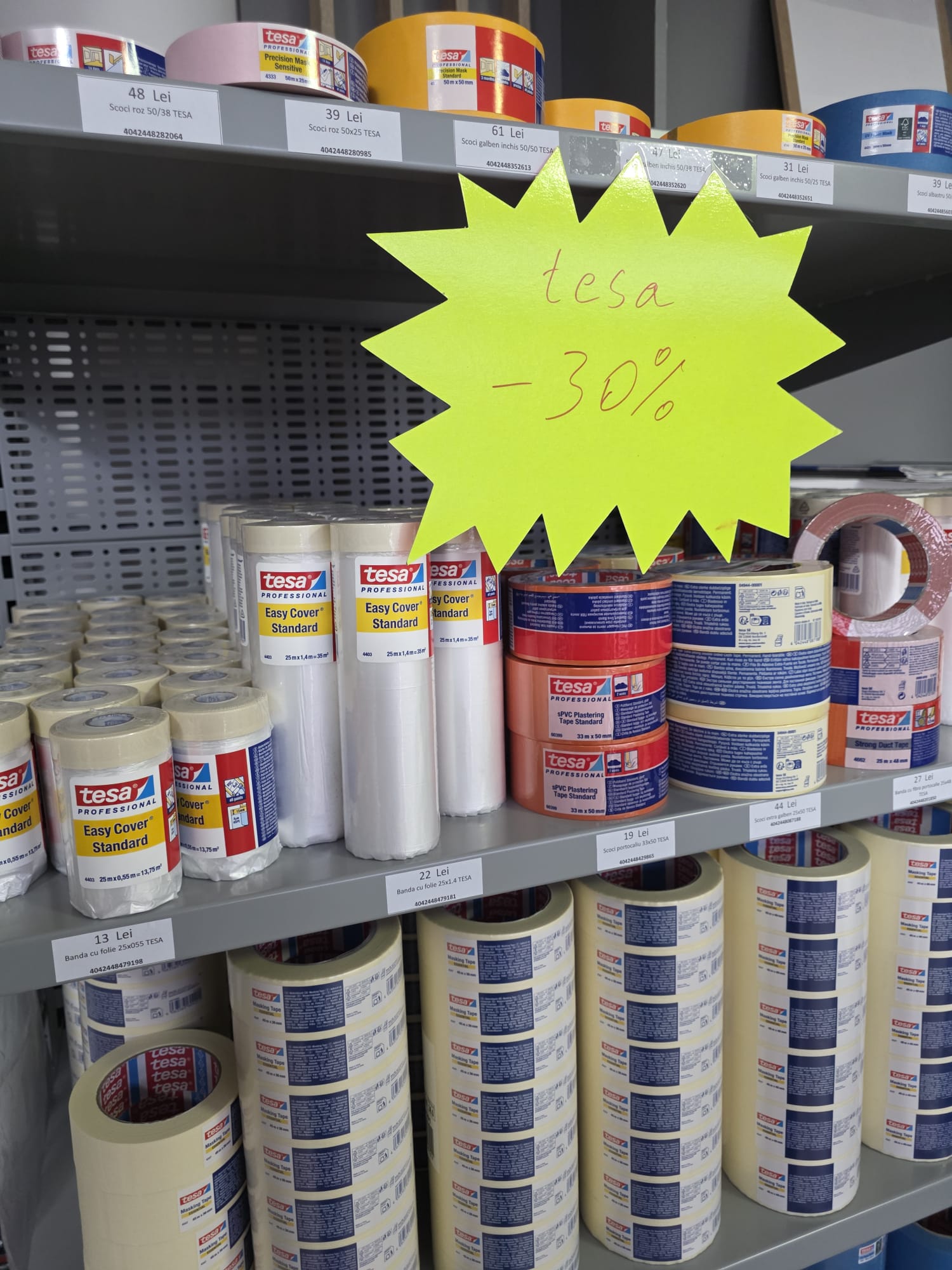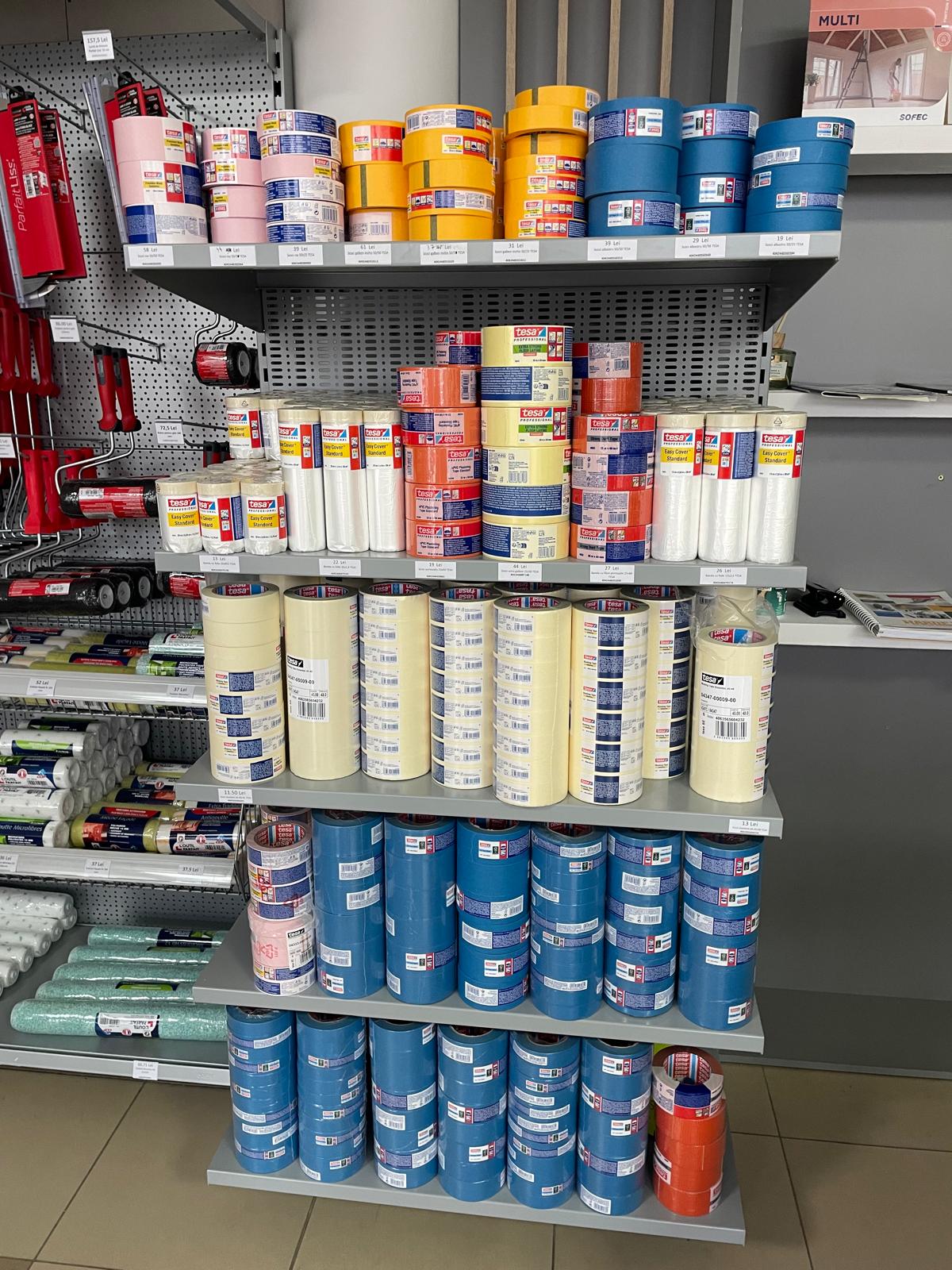 Pe rafturi găsești inclusiv scotch-uri și diverse produse de protecție utile în șantier de la TESA, la prețuri imbatabile.