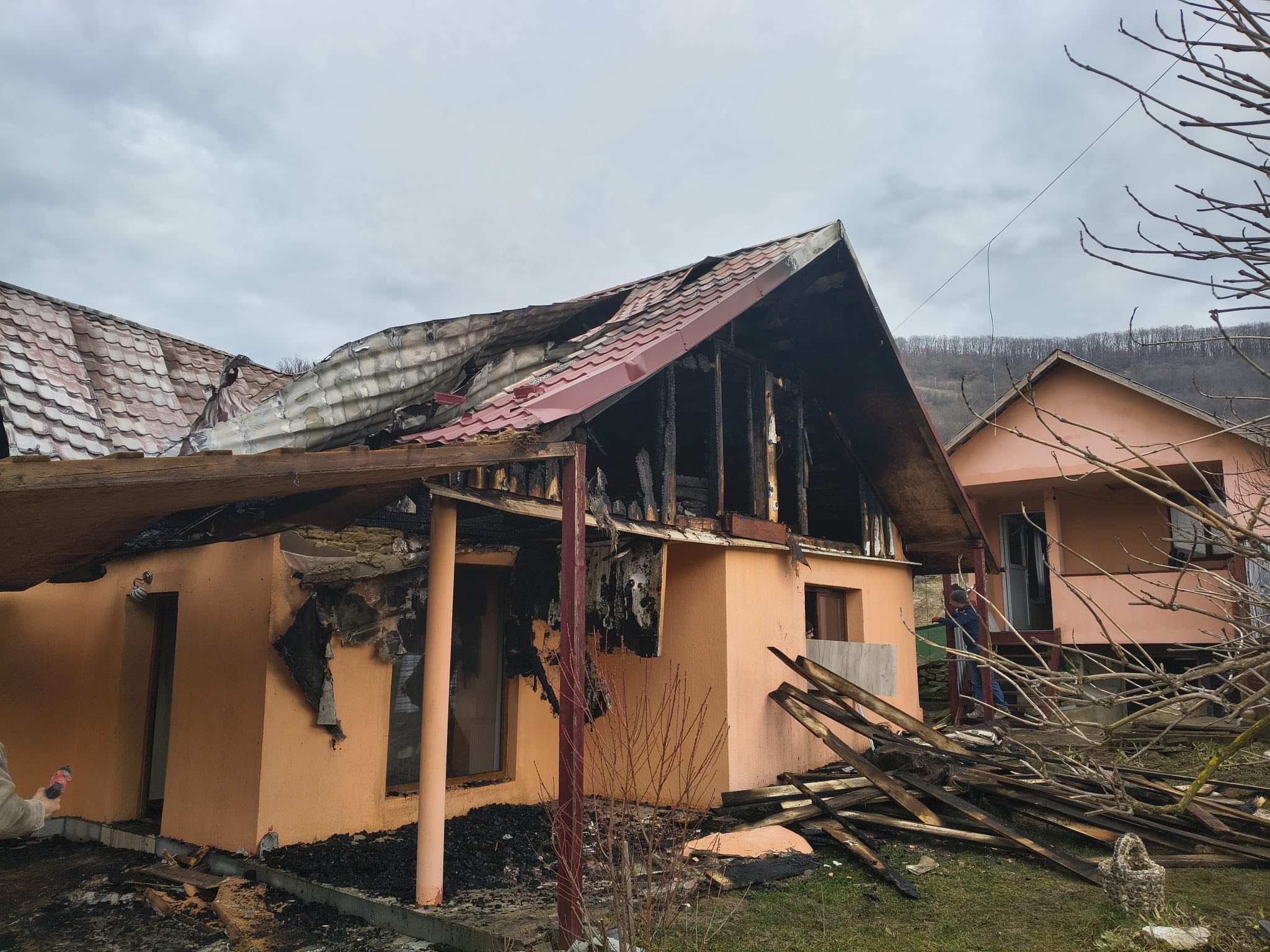 Se uita la televizor când a auzit un sunet ciudat. Când a deschis ușa de la camera centralei, focul s-a extins rapid. Casa familiei Darlati din Fântânele a fost mistuită de flăcări. Ajutăm?