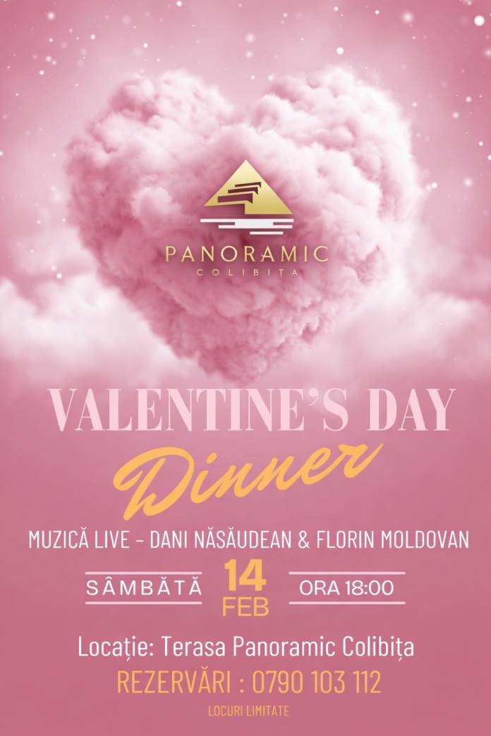 Panoramic Colibița este locul ideal! Pregătește o seală specială, cu muzică live și preparate spectaculoase. Îndrăgostiții sunt așteptați sâmbătă, 14 februarie, începând cu ora 18:00 pe terasa Panoramic Colibița.