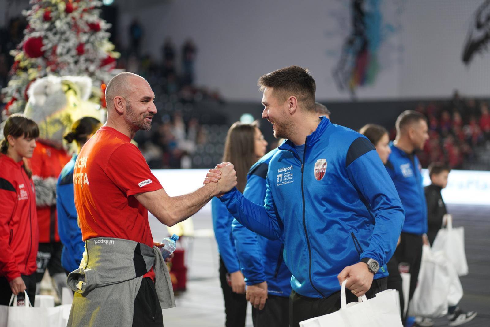 Handbalistele s-au fotografiat cu toți cei prezenți, Căsuța lui Moș Crăciun a fost luată efectiv cu asalt de către cei prezenți.