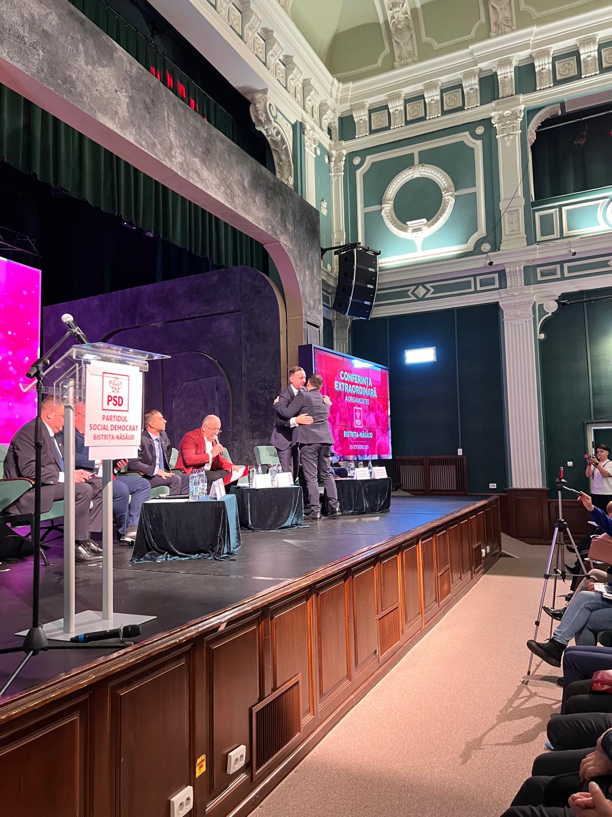 Social-democrații au umplut astăzi sala Palatului Culturii, la conferința extraordinară a PSD BN, în care se votează delegații care vor vota la congresul partidului din 7 noiembrie. De asemenea, astăzi s-a votat și susținerea lui Bogdan Ivan pentru funcția de prim-vicepreședinte al PSD, la nivel național. Dacă va fi ales în cadrul congresului, va reprezenta cea mai mare funcție deținută de un bistrițean.