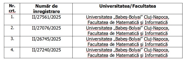 1. Lista cuprinzând studenții care sunt eligibili pentru a beneficia de bursă de excelență, în anul universitar 2025-2026:
