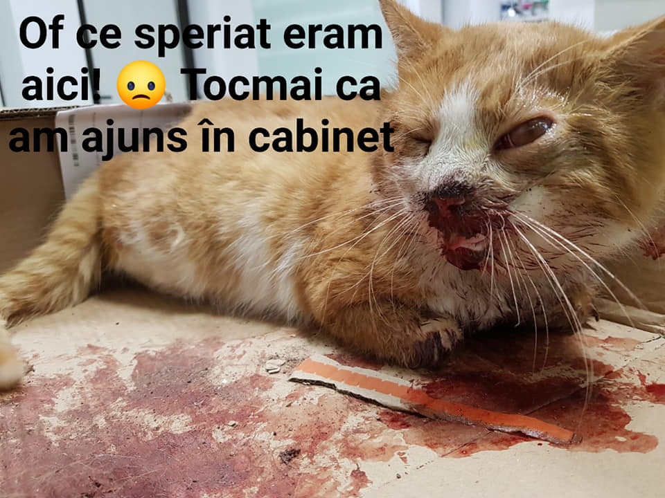 „Din fericire nu am fost lăsat acolo, oamenii care m-au călcat au căutat un veterinar, deși era aproape miezul nopții. Așa am ajuns la Cabinet Veterinar Bistrița. Când m-au văzut, au început să mă bombardeze cu injecții… Ziceau ceva de primul ajutor și se grăbeau să le facă cât mai repede. Încet intensitatea durerii scădea. Apoi au vorbit cu cei care m-au adus, care de fapt voiau să mă eutanasieze! Of, ce speriat eram! Nu voiam să se sfârșească totul aici!