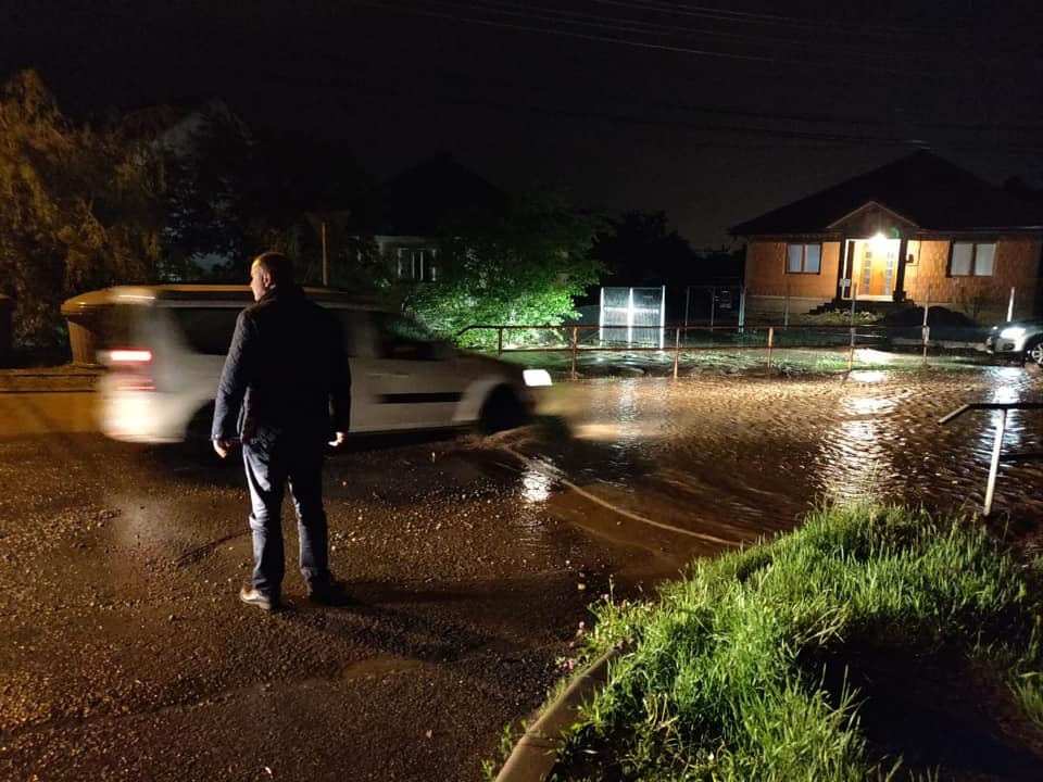 „După manifestările meteo extreme cu care s-a confruntat orașul în această seară, am ieșit pe teren, alături de reprezentanții S.V.S.U. Bistrița să intervenim și să vedem problemele apărute. În mai multe zone din oraș s-au semnalat inundații stradale, apele s-au revărsat în curțile caselor, iar în Ghinda, Slătinița și Unirea s-au înregistrat pagube materiale generate de debitele crescute ale pâraielor din aceste zone”, a scris Cristian Niculae, viceprimarul Bistriței, pe pagina sa de Facebook.