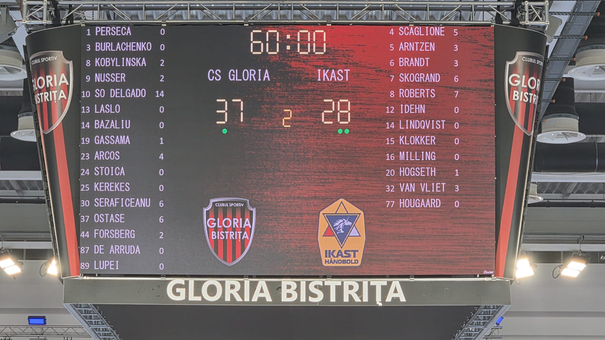 Celelalte reușite ale Gloriei au fost semnate de Sonia Seraficeanu (6), Lorena Ostase (6), Paula Arcos (4), Monika Kobylinska (2), Larissa Nusser (2), Matilda Forsberg (2), Kaba Gassama (1). Renata de Arruda a contribuit cu 10 intervenții din 38 de aruncări înfruntate.