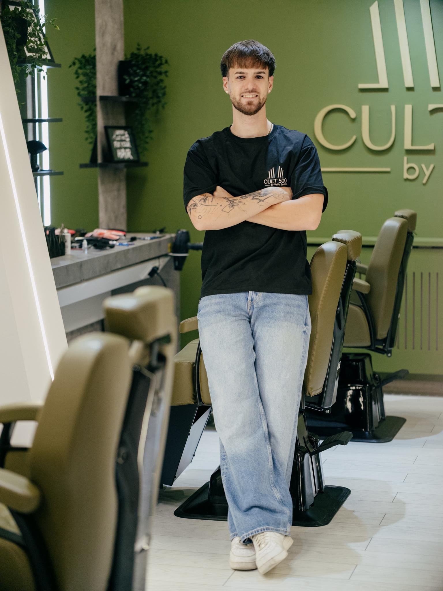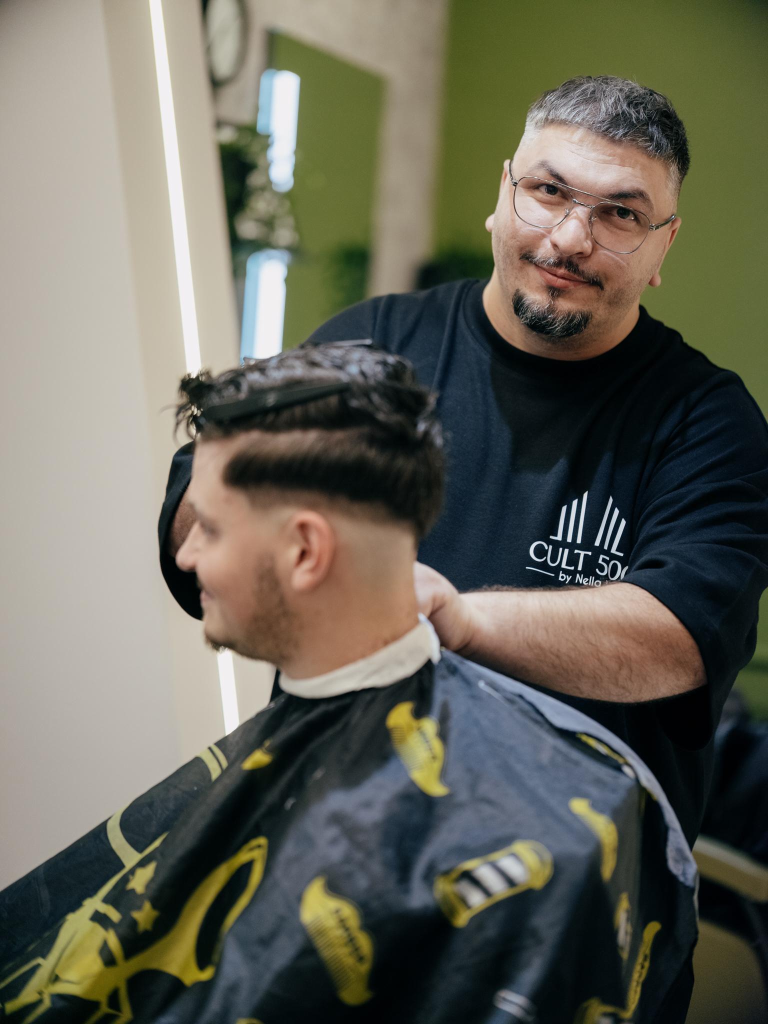 Și băieții au zona lor la Cult 500, unde trei tineri hair stiliști stăpânesc în detaliu tunsorile bărbătești, de la fade-uri moderne la linii clasice, oferind inclusiv servicii de aranjat și contur pentru barbă, spălat și styling.