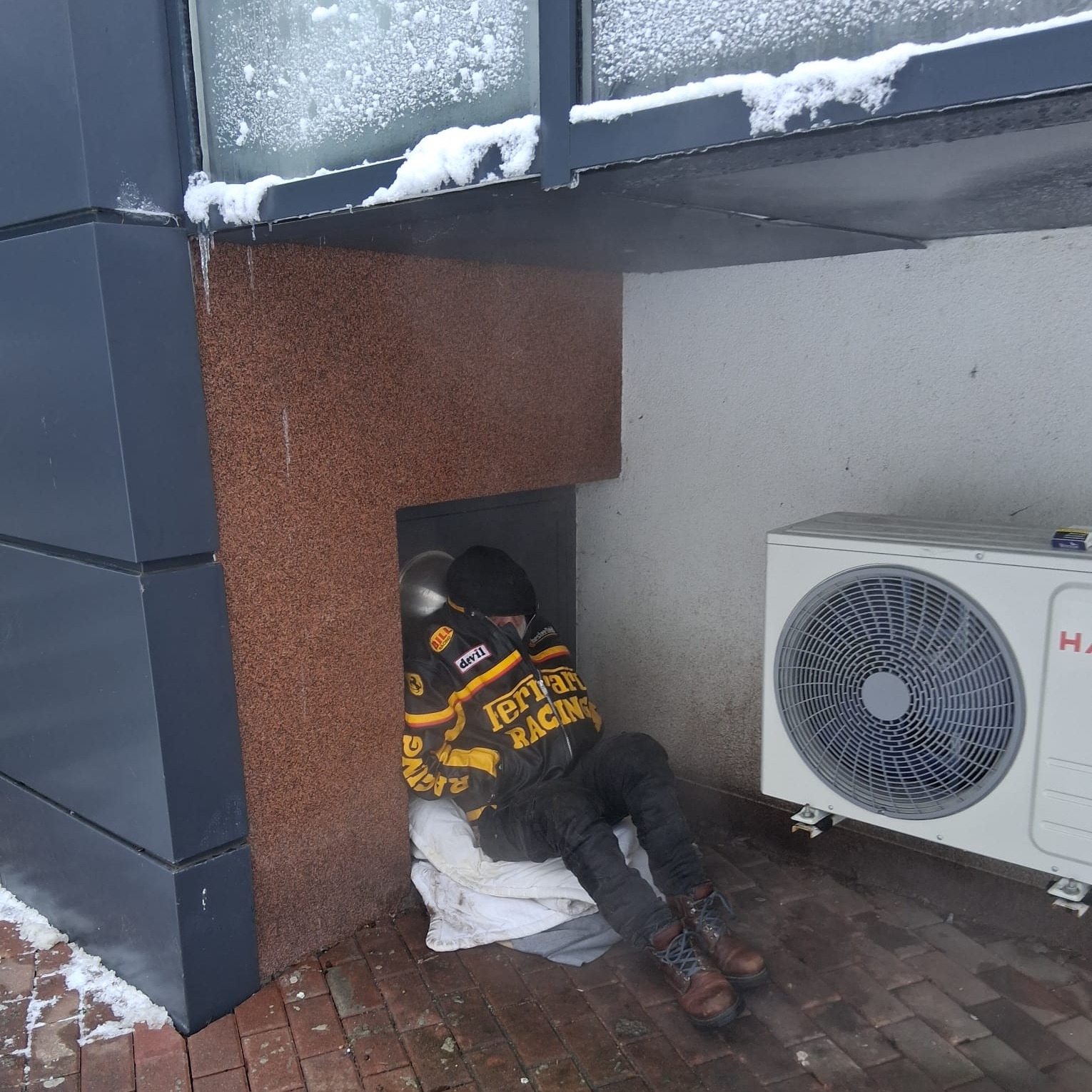 Cum încearcă să facă față frigului persoanele fără adăpost: se adăpostesc lângă grilele de evacuare a aerului cald