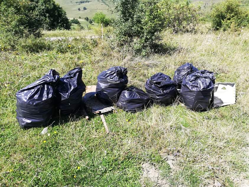 Au „dovedit” tot gunoiul de pe Dealul Budacului, singuri! Deși au fost doar doi, au adunat saci întregi de gunoaie, în cadrul unei acțiuni de ecologizare.