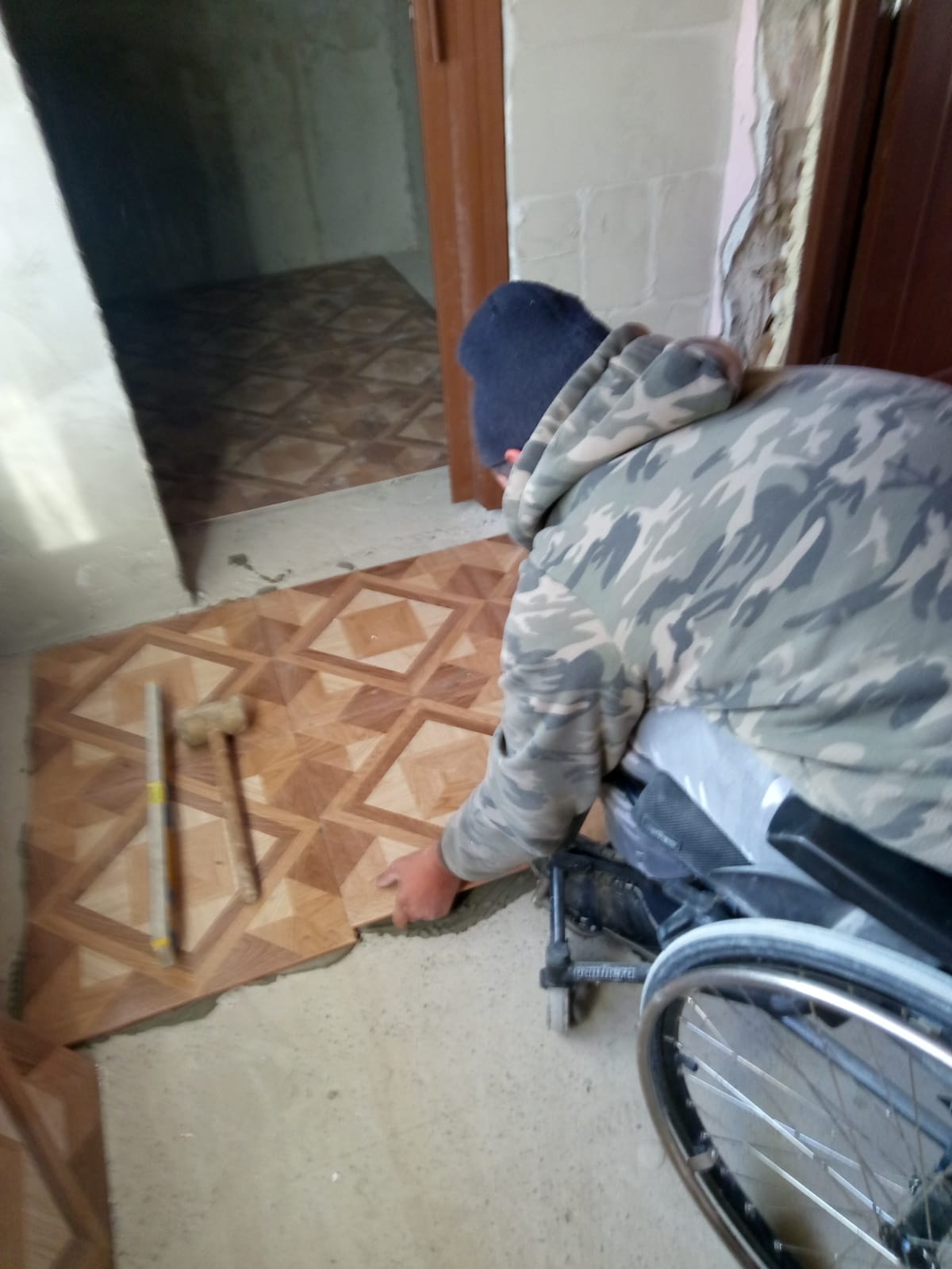 L-am găsit muncind în casa care o „reamenajează” pentru a putea trece dintr-o cameră în alta, cu căruciorul cu rotile. Alături de un prieten, sau tatăl său, Alexandru Macai lucrează cu drag și dedicare, nelăsând limitările sale să îl împiedice.
