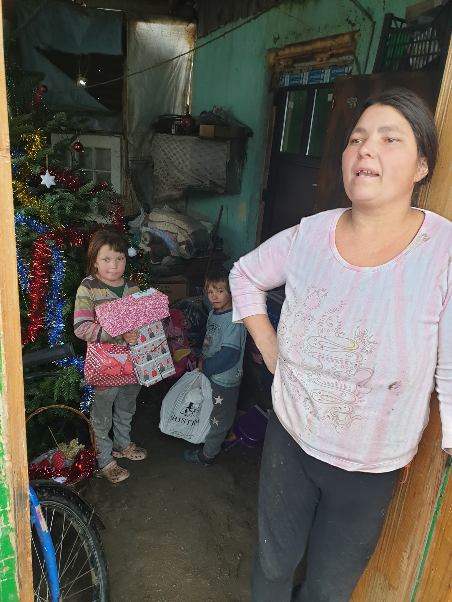 Familia Dobrin din Mărișel a fost foarte fericită să vadă multitudinea de daruri trimise. Fiecare copilaș a avut un pachețel frumos ambalat, hăinuțe, jucării, multe alimente și cozonaci de pus pe masa de Crăciun. Și și 300 de lei.