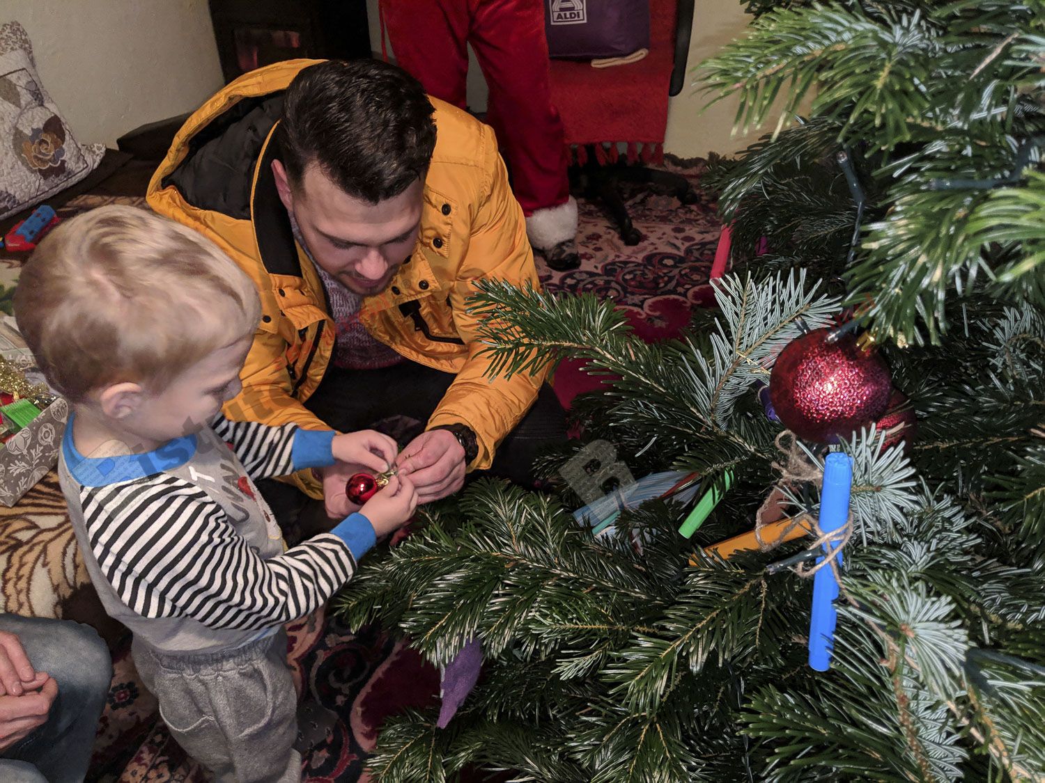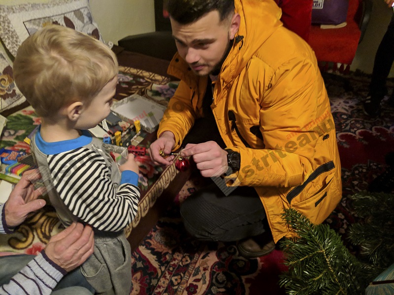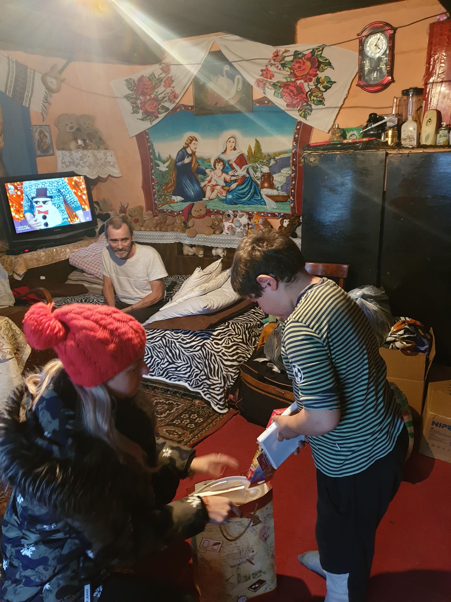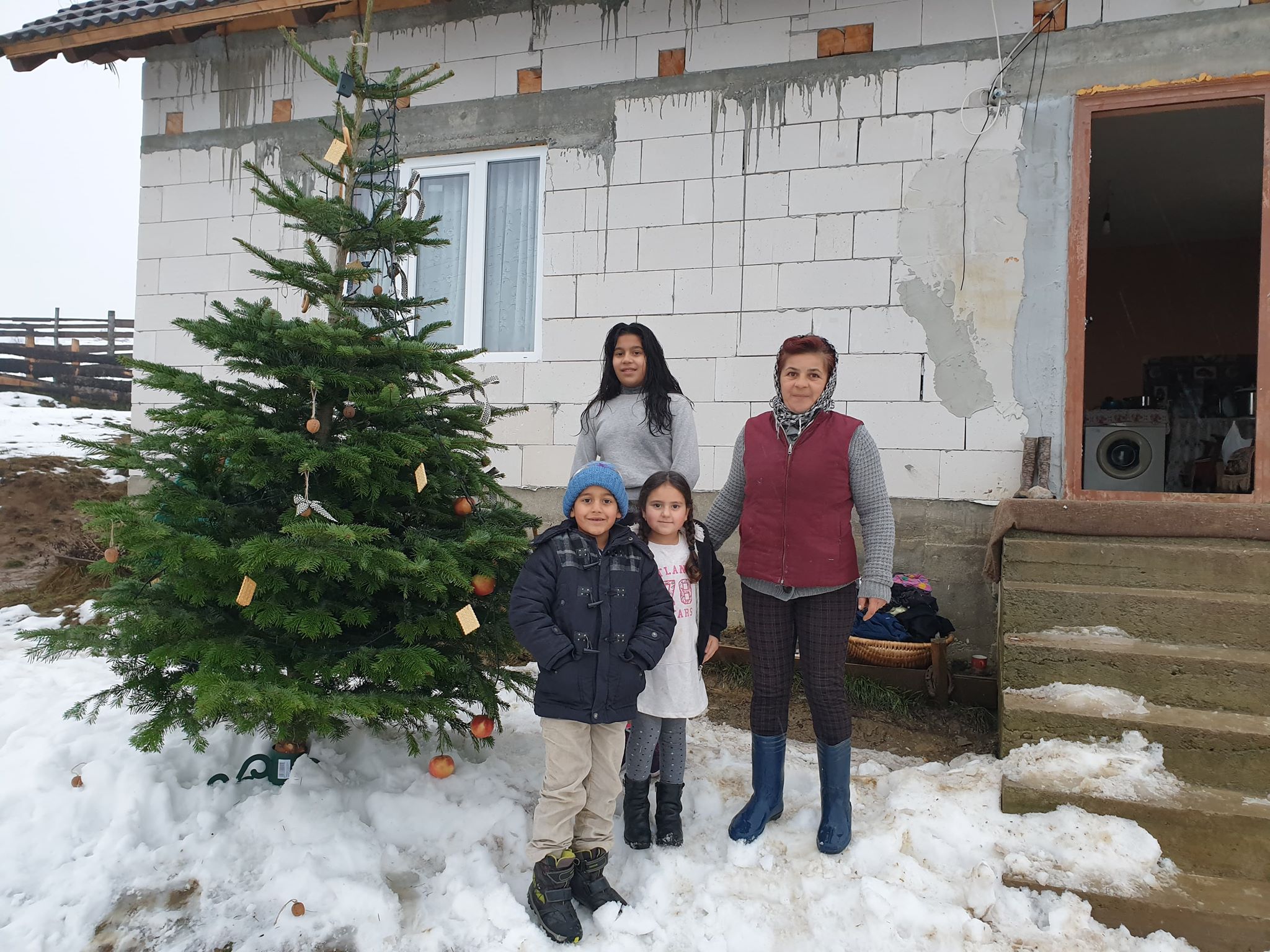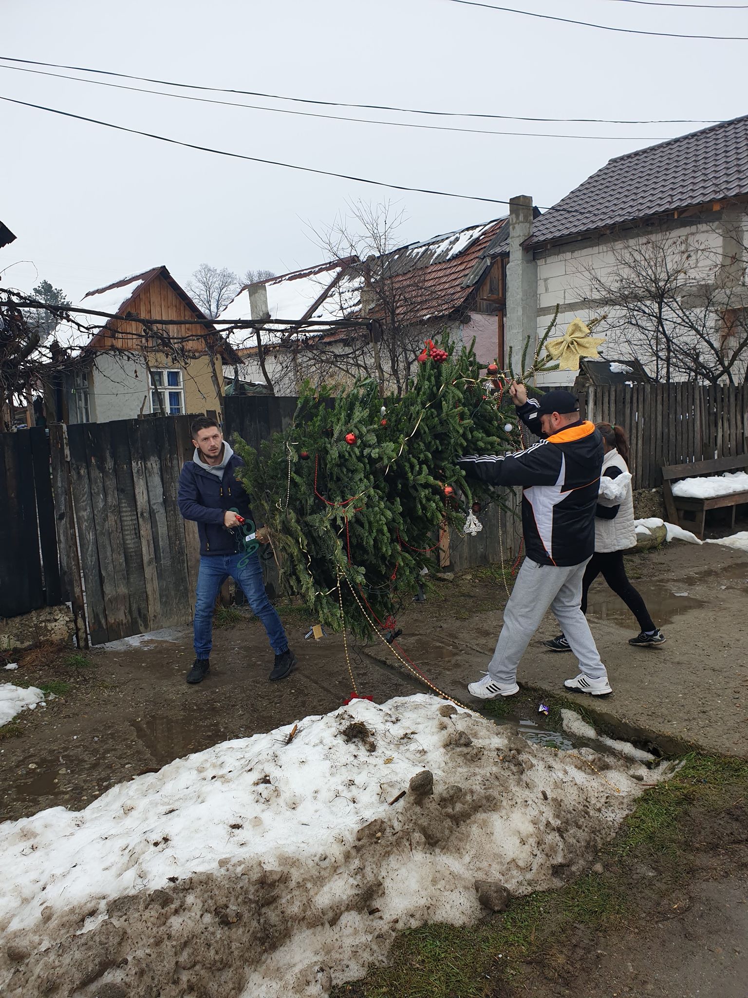 Chiar dacă cele două camere improvizate nu arată foarte bine, ne-am asigurat că le dăm pături și hăinuțe trimise de voi. Am completat cu alimente, dulciuri și jucării. Prin bunăvoința voastră le-am oferit și 320 de lei, pentru a-și mai cumpăra una-alta. Iar piesa de rezistență a fost bradul cel mare și frumos împodobit.