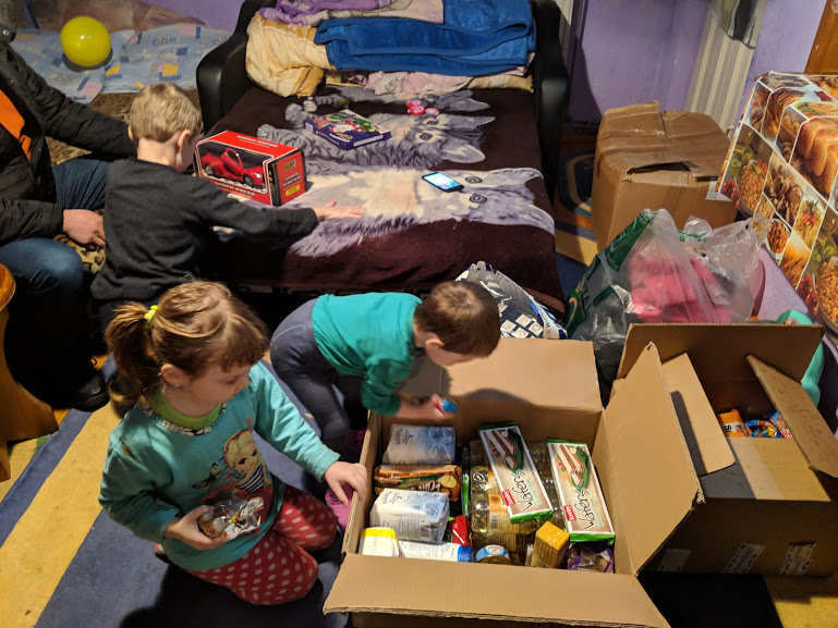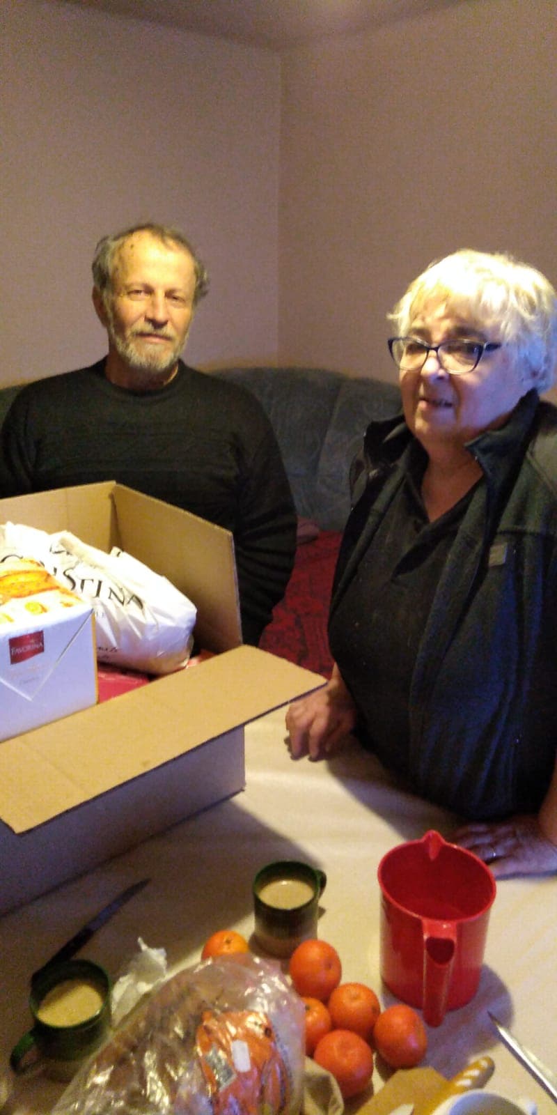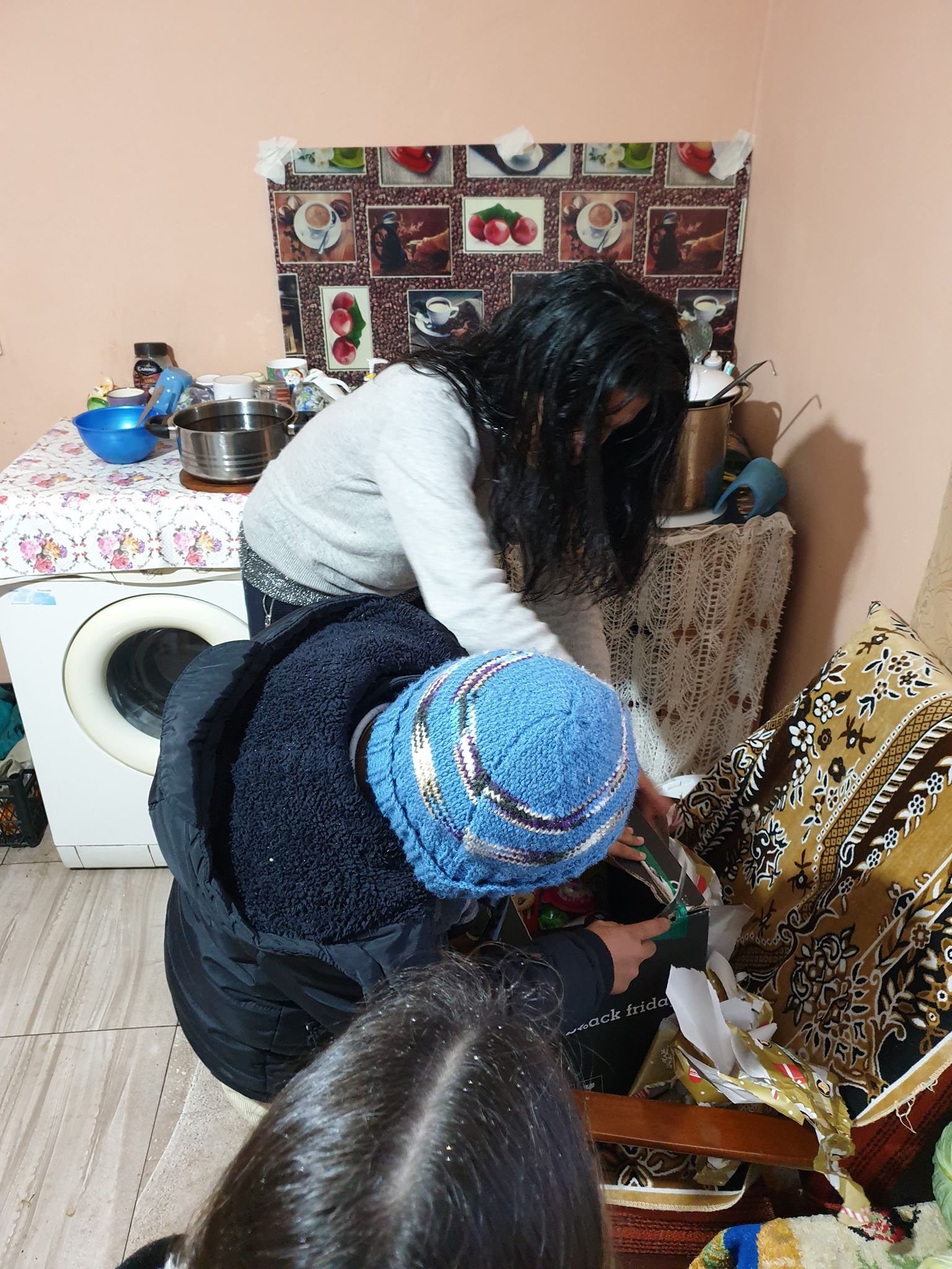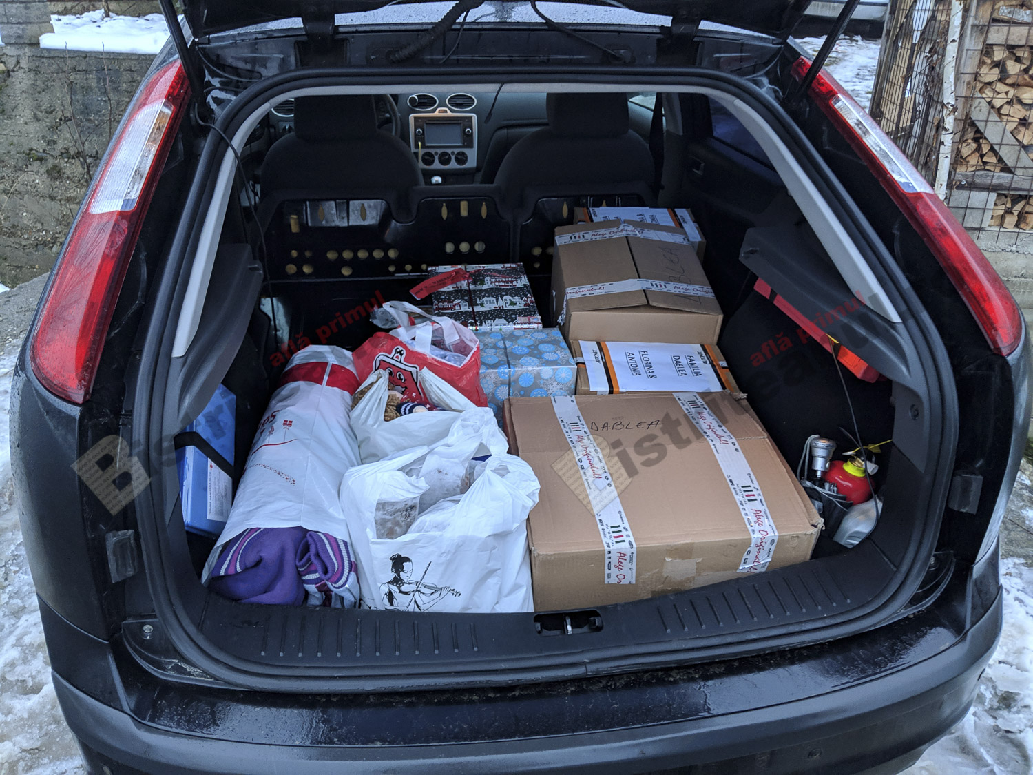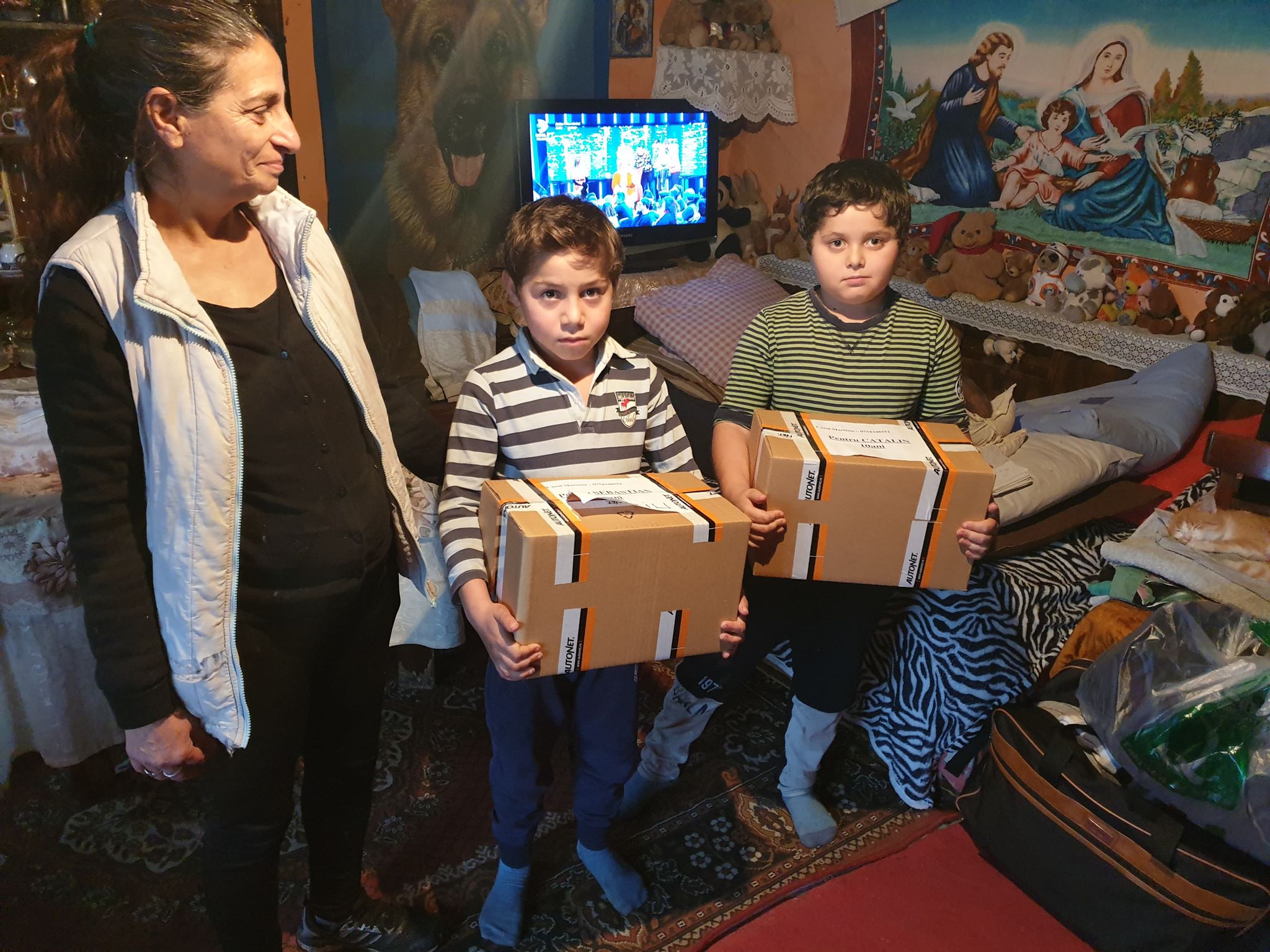 Bucurie maaare în familia Crețiu, ieri. Pachete frumoase, generoase, ce ascundeau alimente și haine, au fost date celor doi nepoței, unchiului și bunicilor.