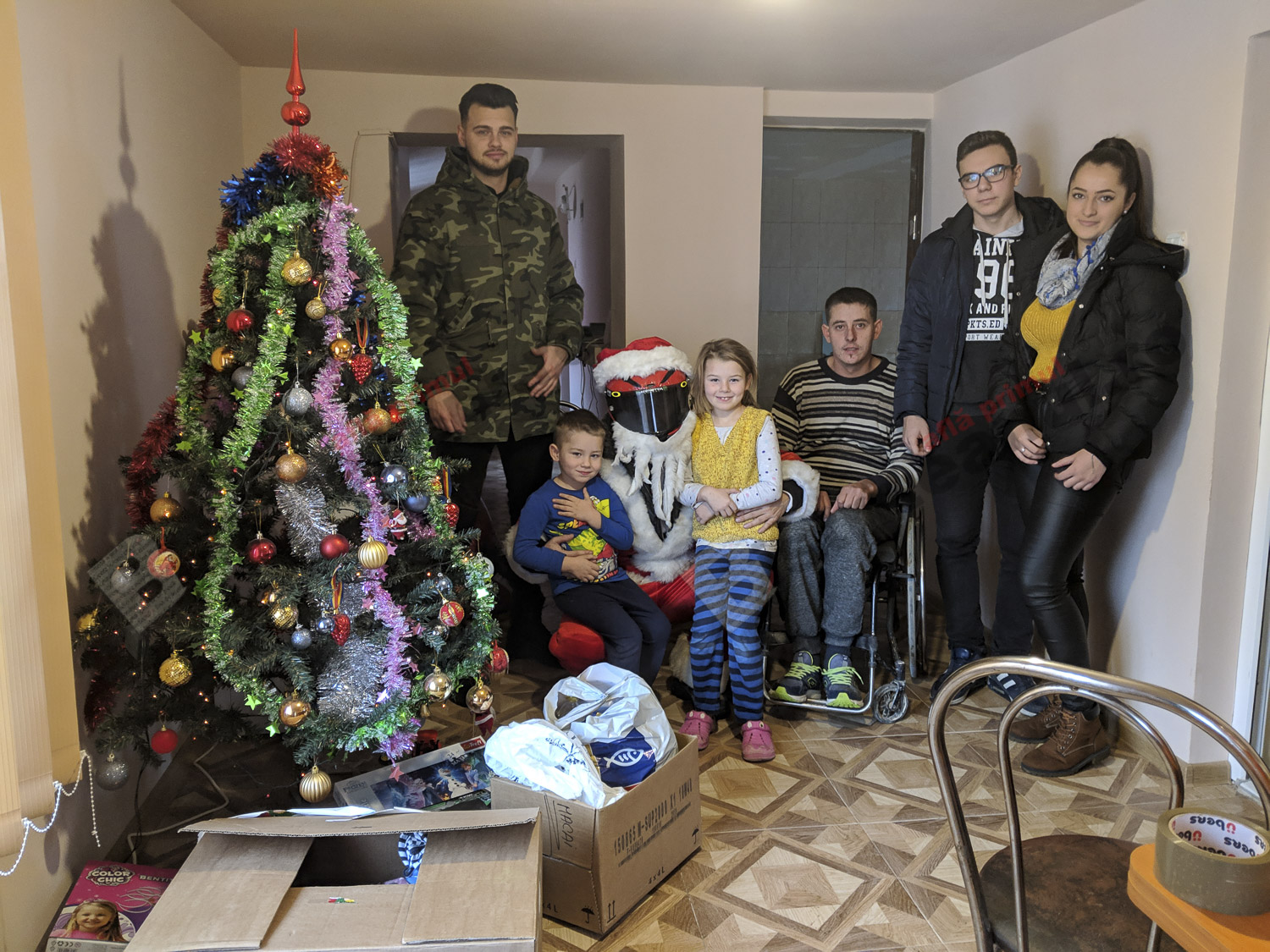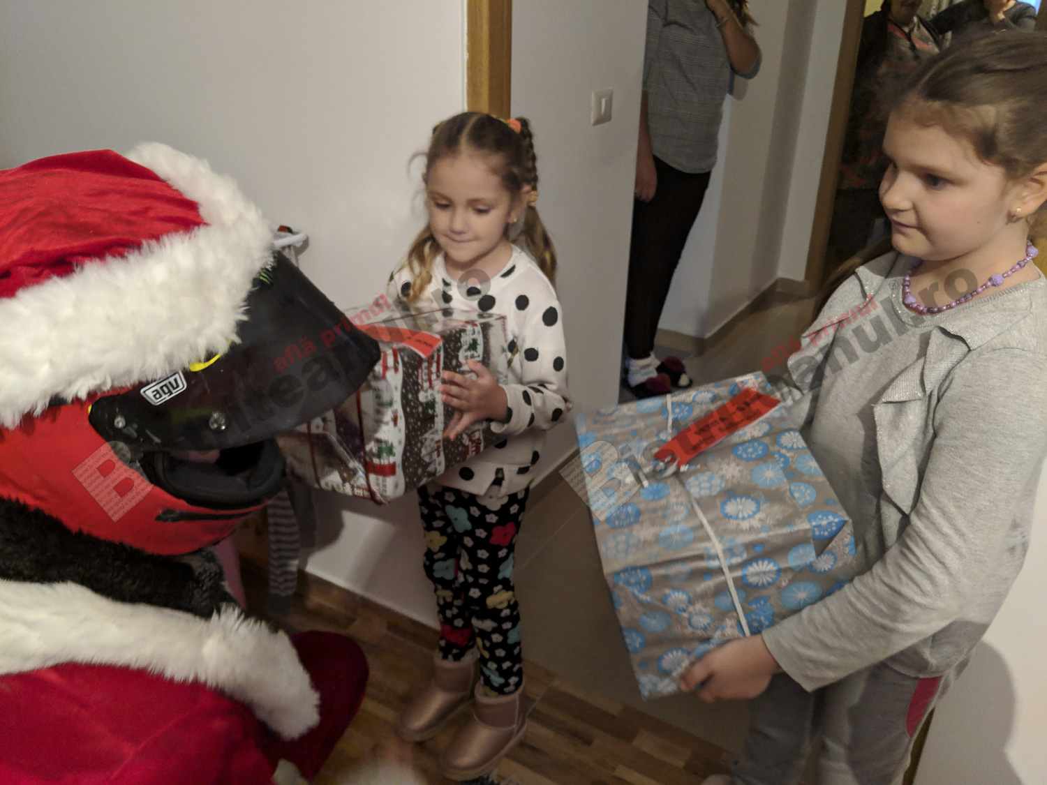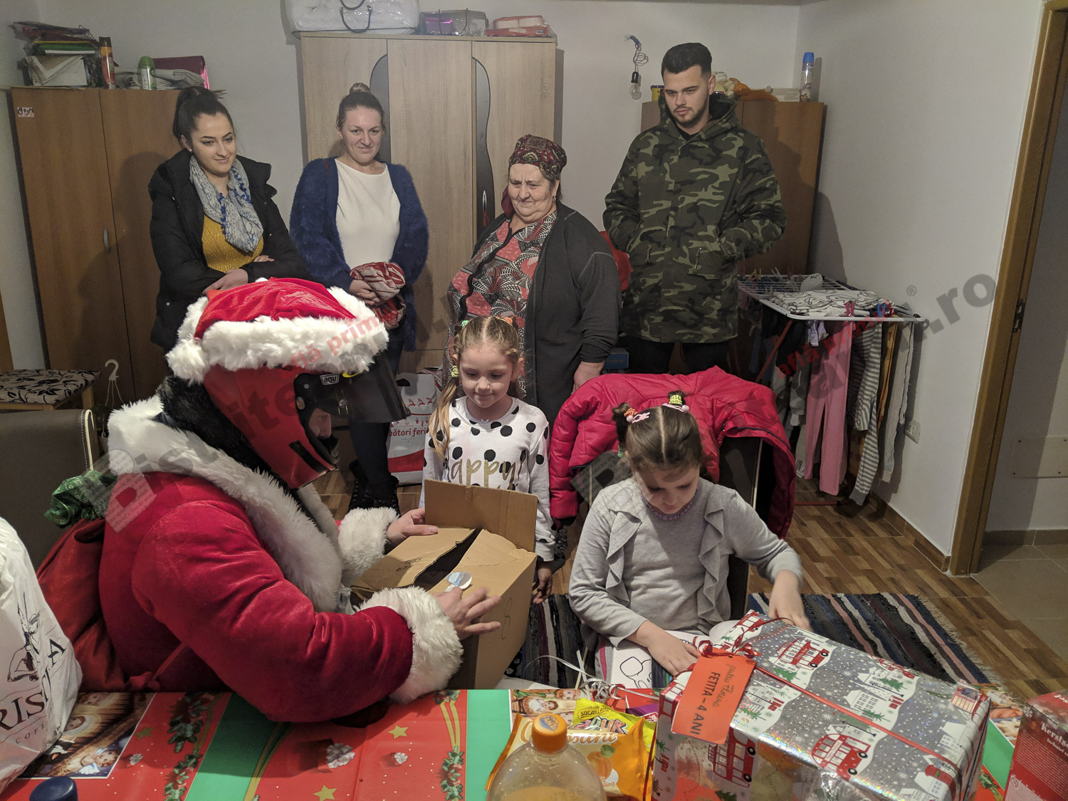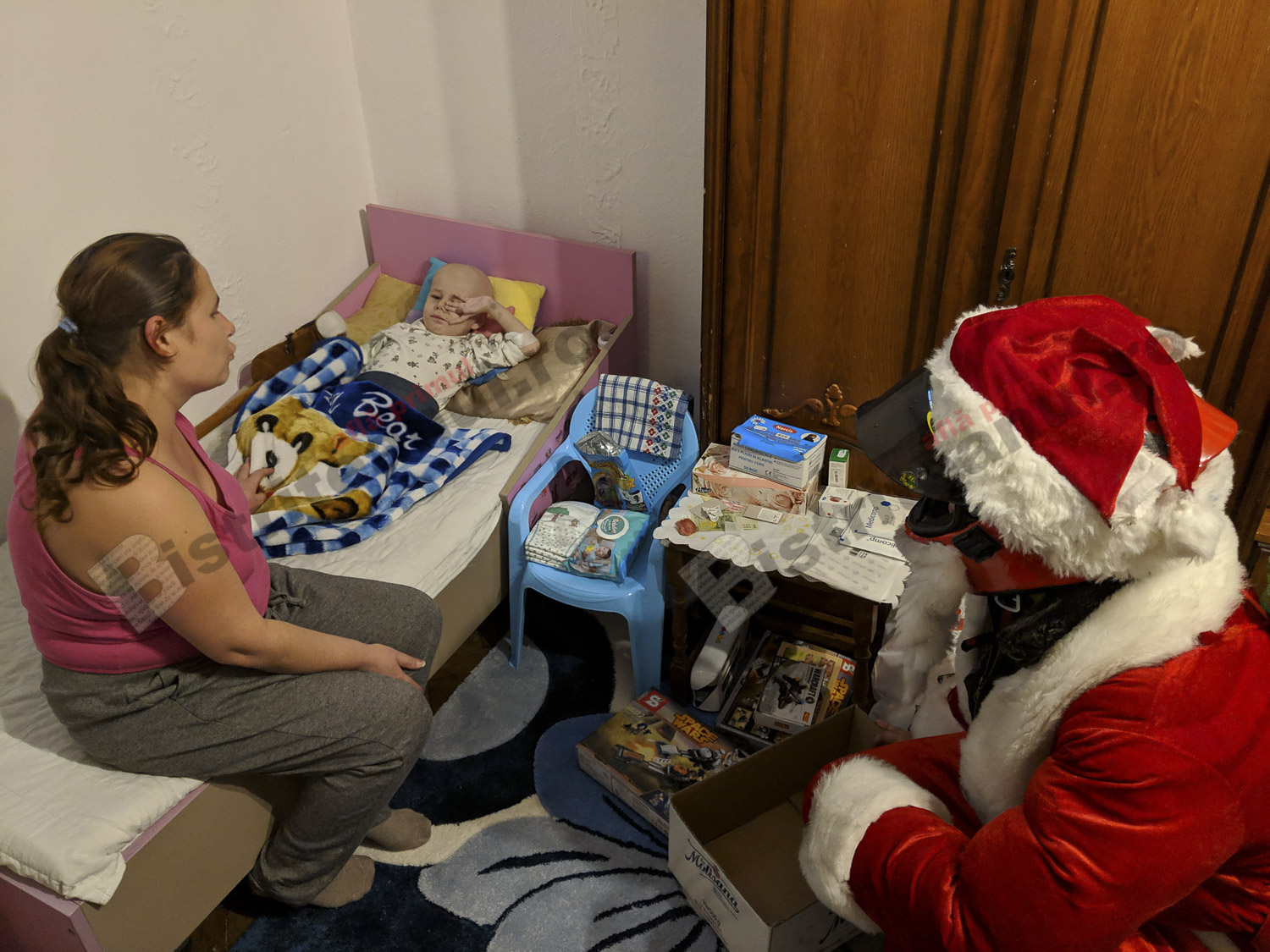 Primul caz prezentat a fost cel al familiei Nica. Alexandra a început să plângă atunci când ne-a văzut, exprimând: „Nu am crezut că există atâția oameni buni!”. Ne-a spus că a fost copleșită de ajutorul primit de la atââââția oameni. Alesia a plâns și ea, de bucurie că a putut să stea în brațe la Moșul cel tânăr, venit cu motocicleta. Le-am dus daruri și 100 de lei, aduși de cineva la cantină.
