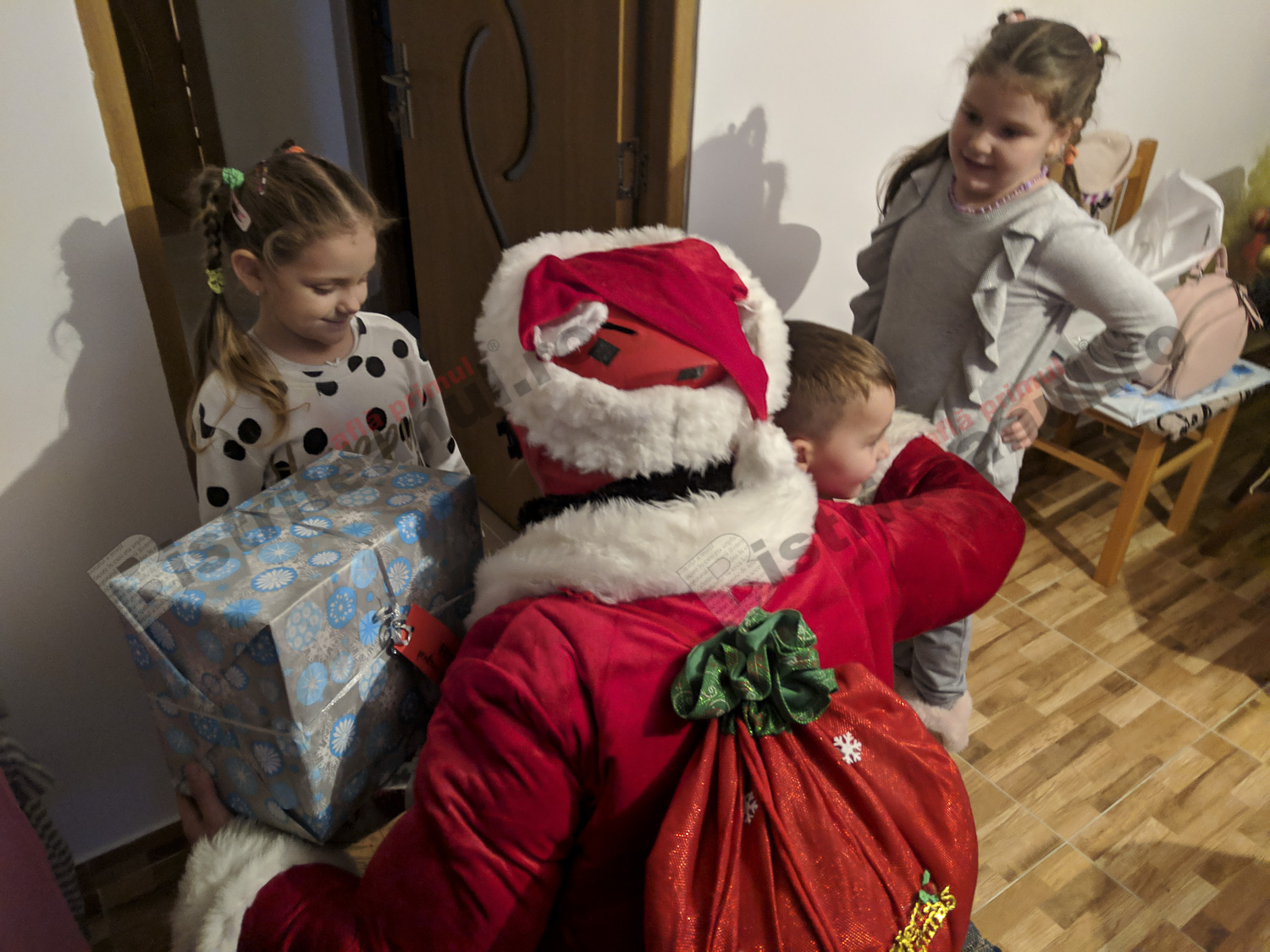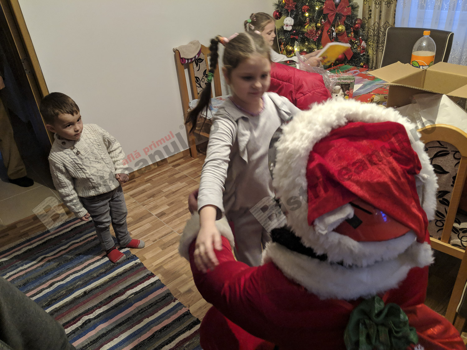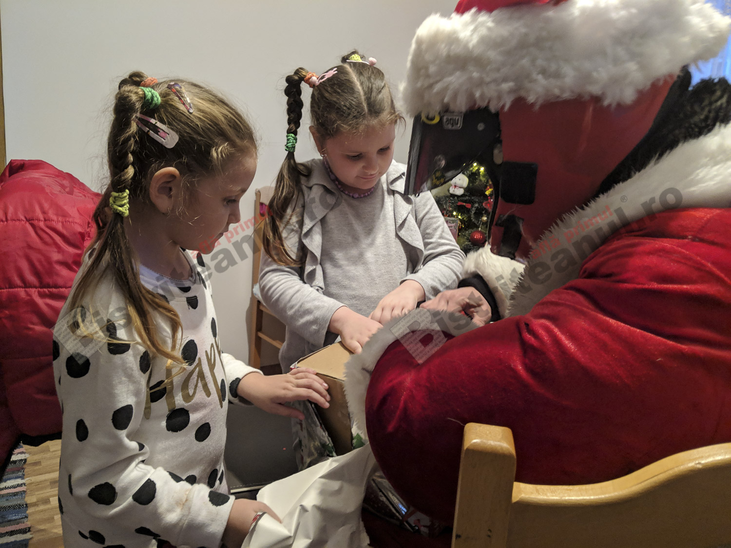 Remus, băiețelul de aproape 6 anișori, ne-a șocat pe toți când a spus: „Eu știu că tu nu esți moșul adevărat!”. Cu toate acestea, nu s-a mai dat dus de lângă Moș. Patricia a început să facă puzzle-uri și să modeleze din plastilină. Iar Alexandru ne povestea diferite „pățanii”, cu un optimism și un zâmbet pe buze de ne-a cucerit cu totul. Abia ne-am dezlipit de această familie, pentru a continua cu împărțitul darurilor.