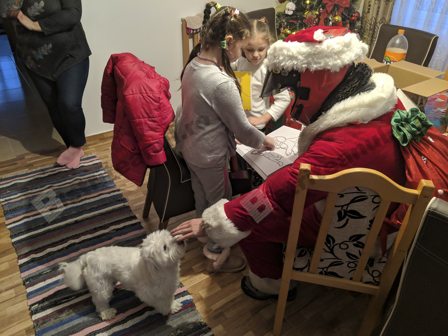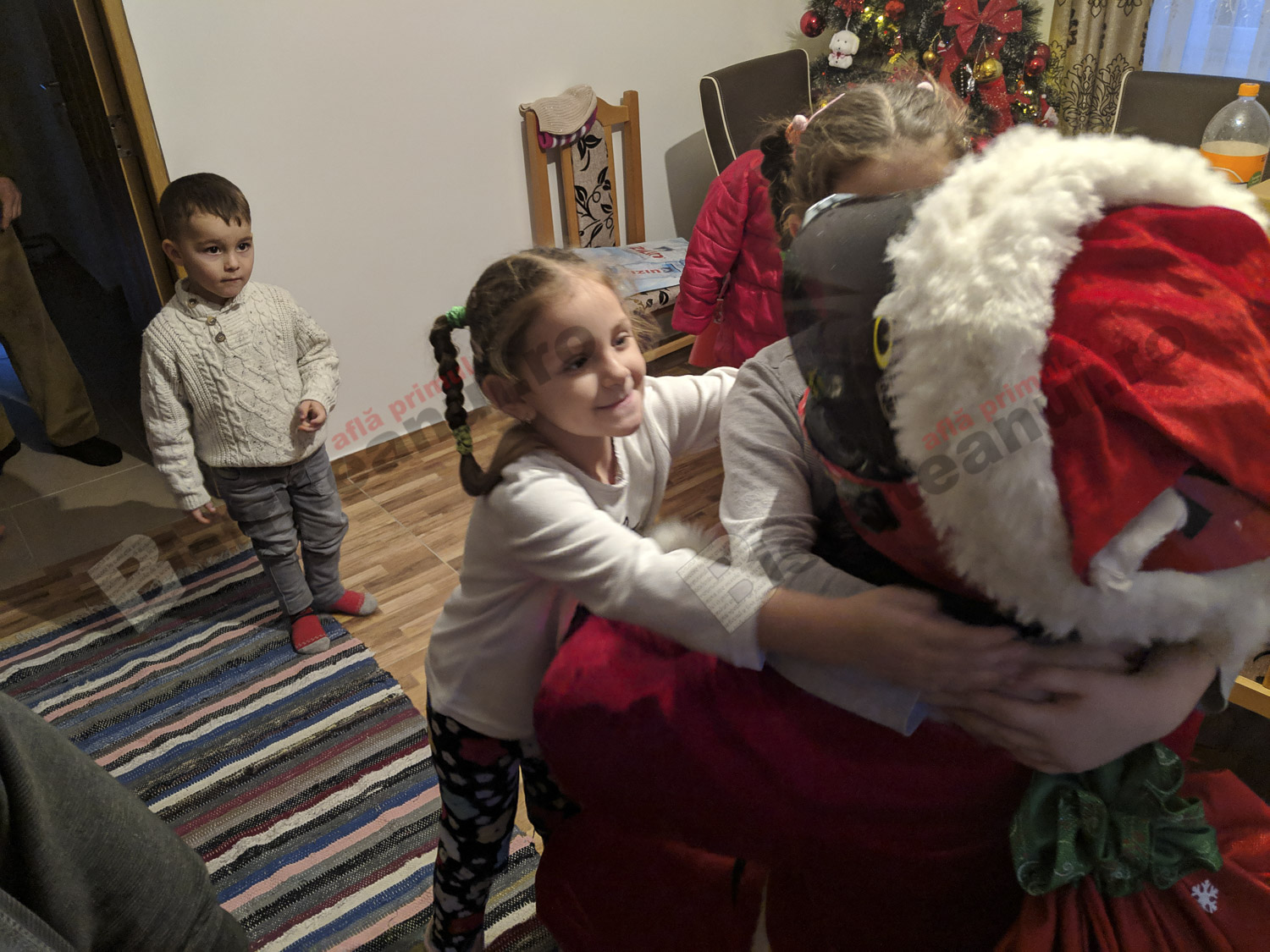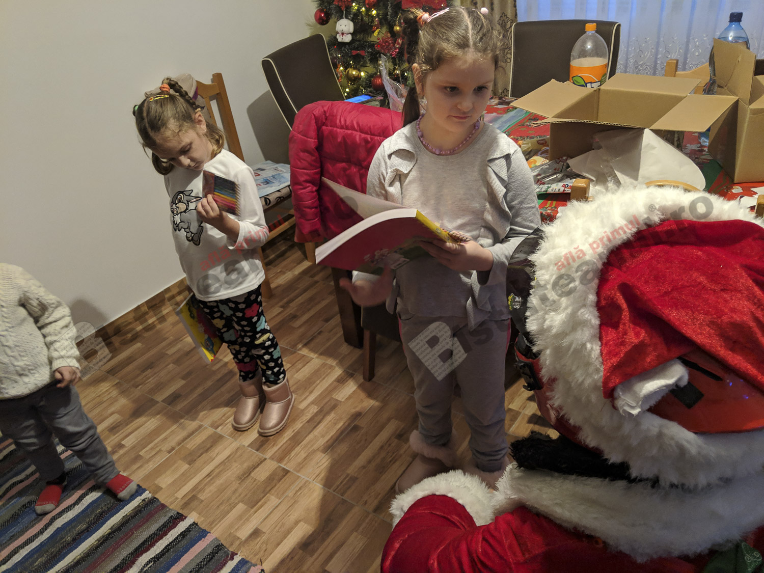 Remus, băiețelul de aproape 6 anișori, ne-a șocat pe toți când a spus: „Eu știu că tu nu esți moșul adevărat!”. Cu toate acestea, nu s-a mai dat dus de lângă Moș. Patricia a început să facă puzzle-uri și să modeleze din plastilină. Iar Alexandru ne povestea diferite „pățanii”, cu un optimism și un zâmbet pe buze de ne-a cucerit cu totul. Abia ne-am dezlipit de această familie, pentru a continua cu împărțitul darurilor.