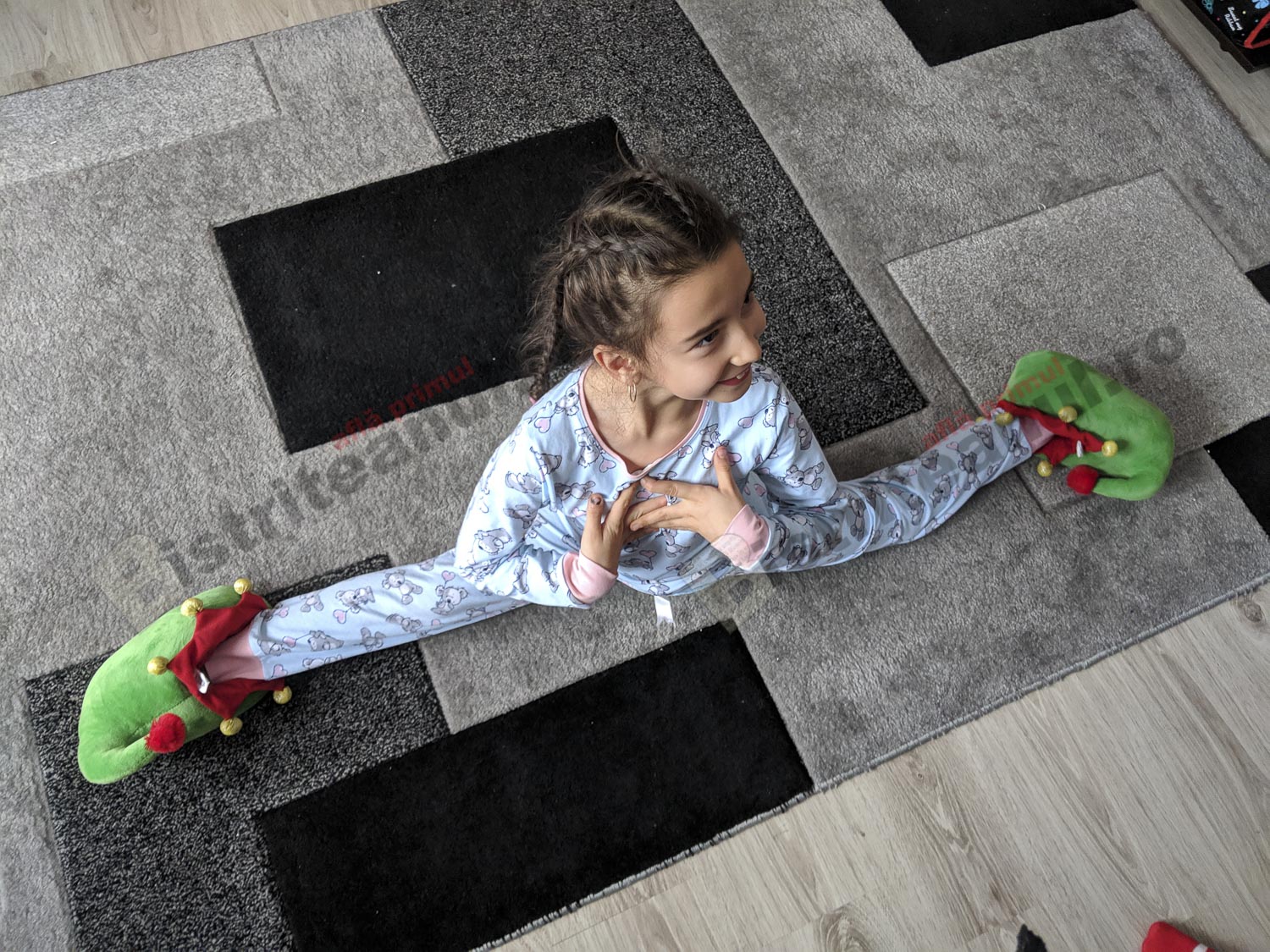 Ieri, am rămas șocați și lacrimile ne-au curs de bucurie. Când l-a văzut pe Moșu, Antonia a fugit la el, l-a îmbrățișat, i-a spus poezii și s-au uitat împreună în cartea de colorat primită în cadou. Am aflat astfel că este o fetiță foarte generoasă și deșteaptă, descurcăreață și… vorbăreață.