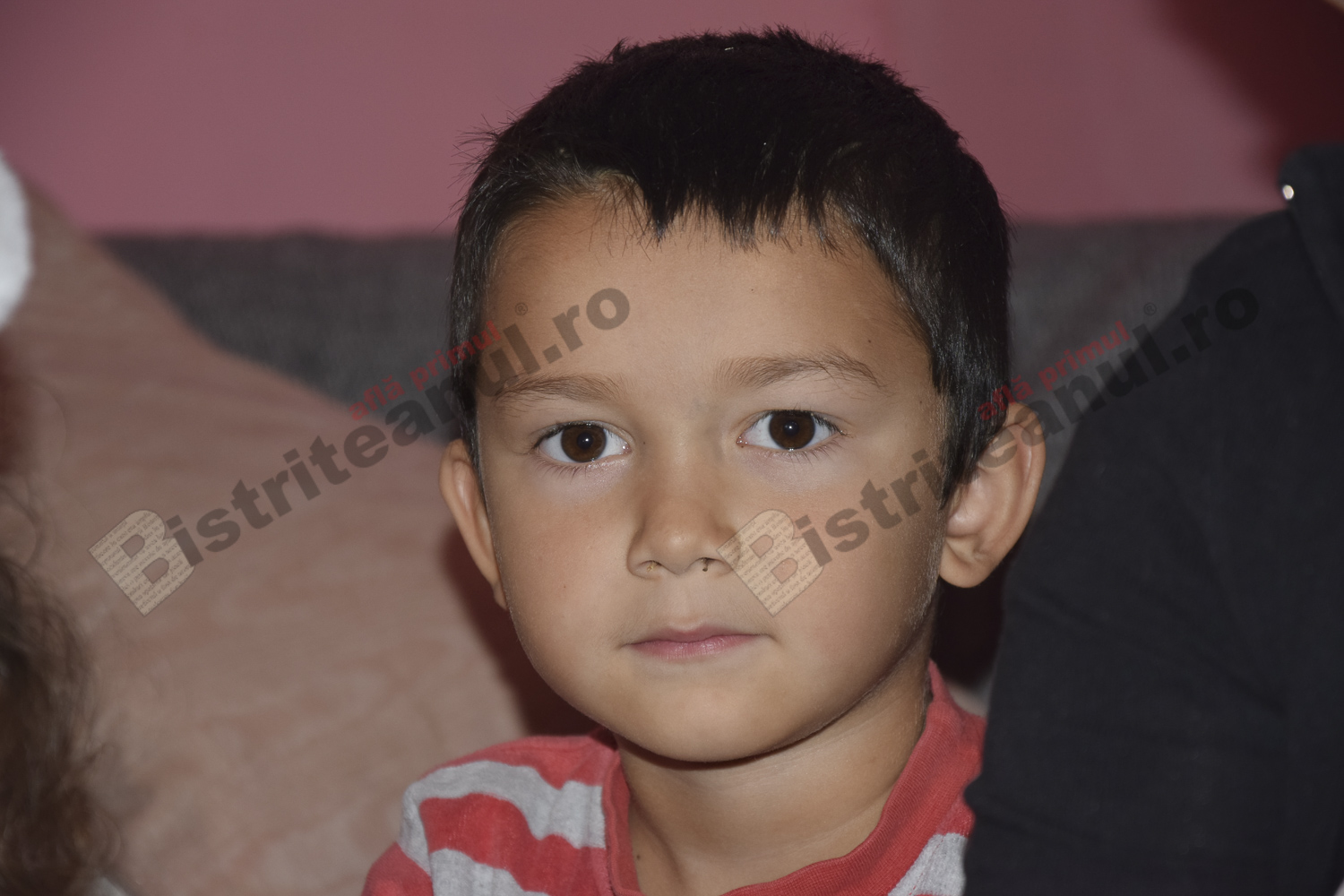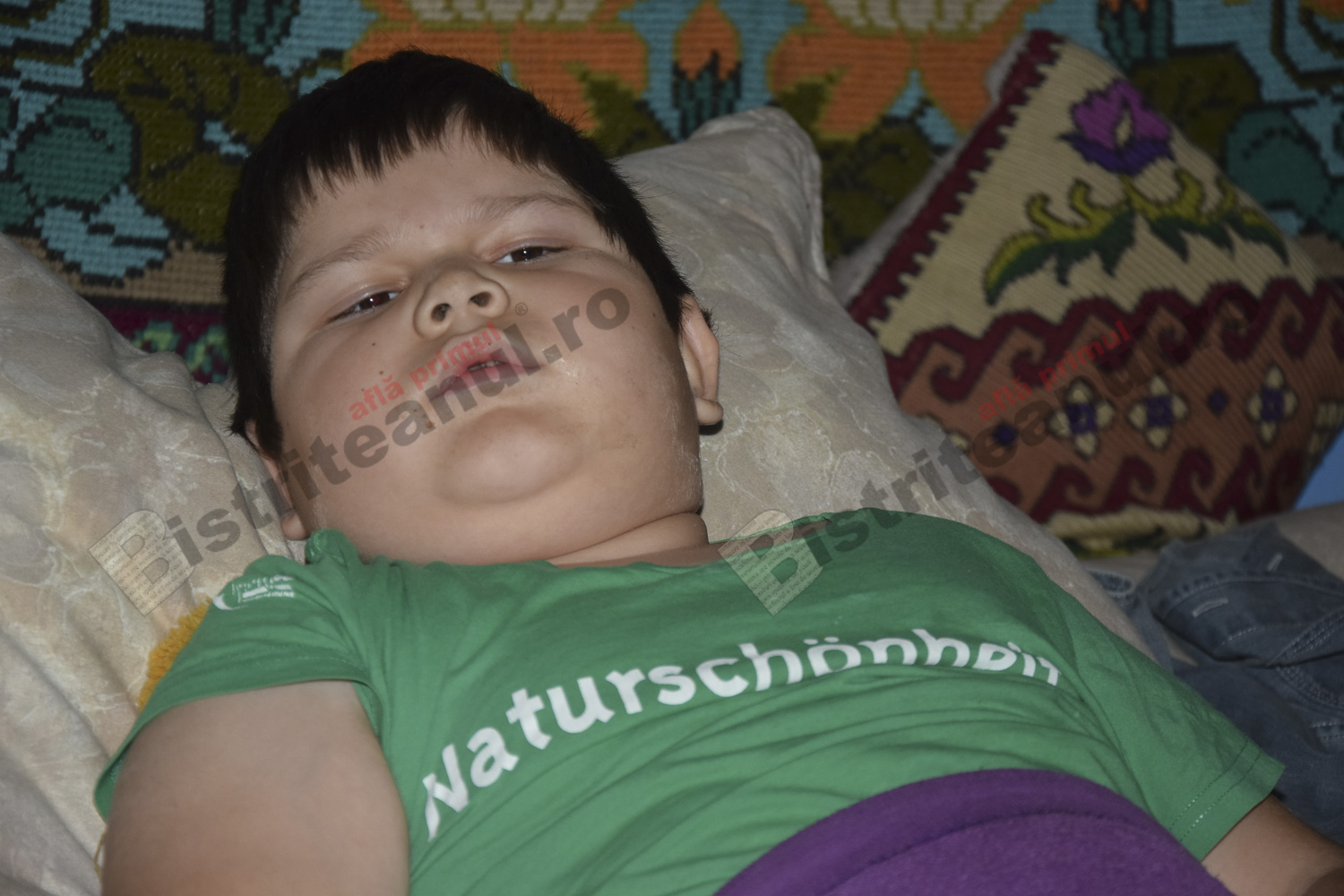 Băiețelul de 8 anișori era la bunica. El e dependent de căruciorul cu rotile. Face școală acasă și îi place. S-ar deplasa mai mult dacă ar avea un cărucior mai bun. Sau dacă ar avea posibilitatea să ajungă săptămânal în Beclean, la recuperări, ar putea chiar ajunge să se deplaseze pe picioarele lui.