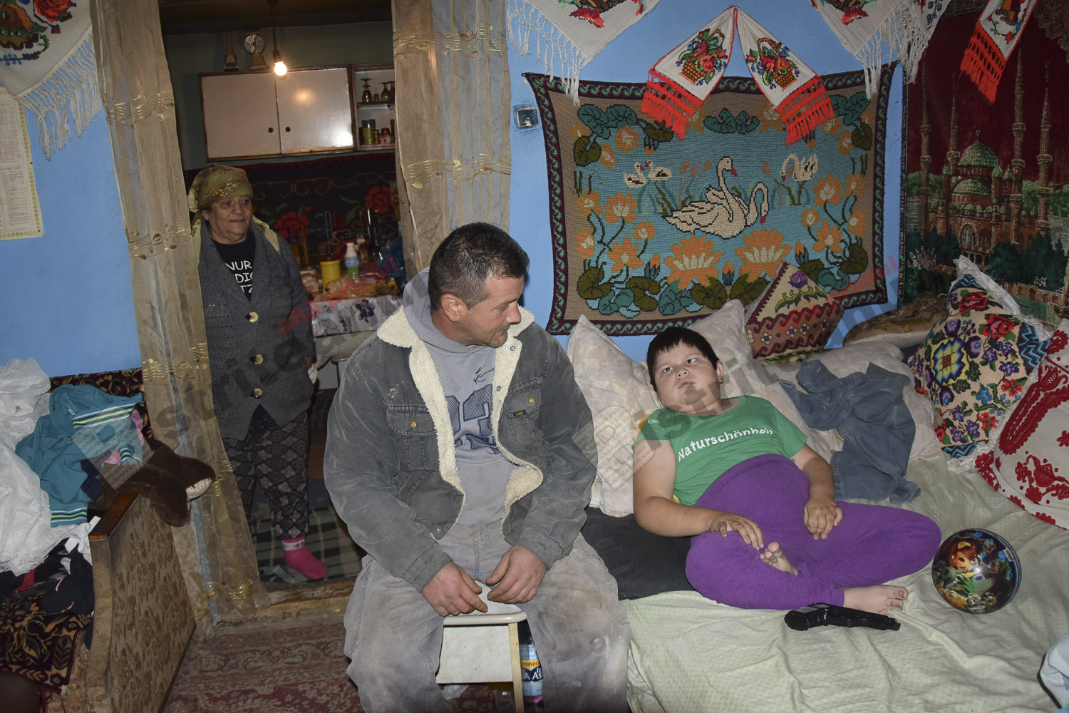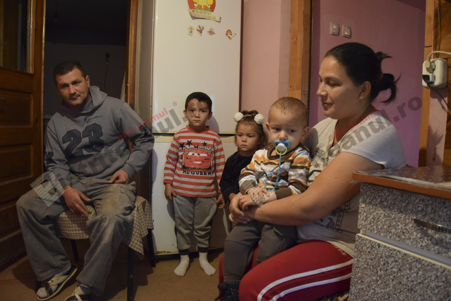 Dorel lucrează în construcții, cu ziua, ce îi cade la mână. La banii aceștia se adaugă pensia de handicap a băiețelului de 8 anișori și alocațiile copiilor.