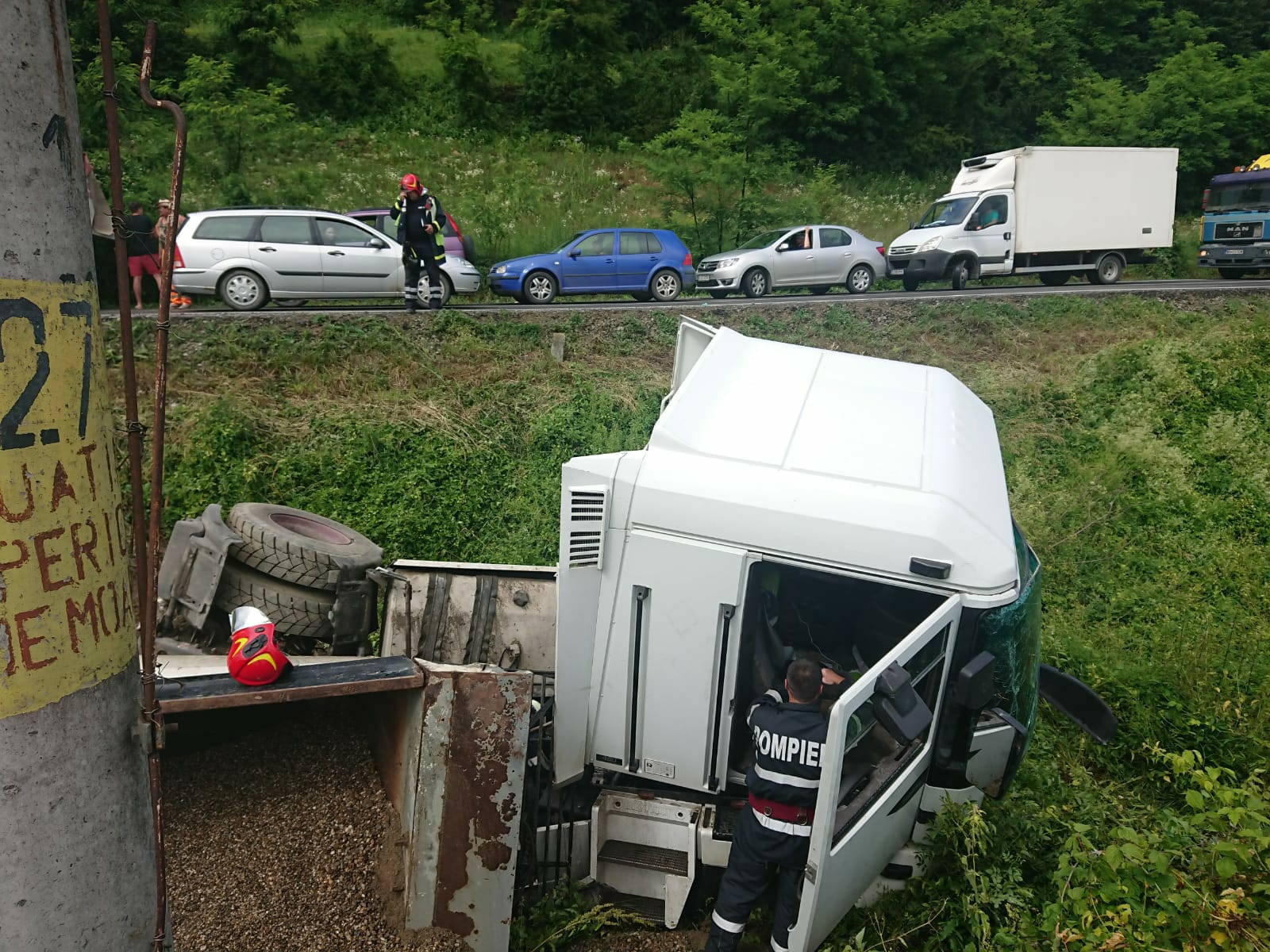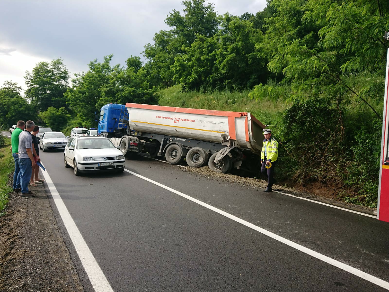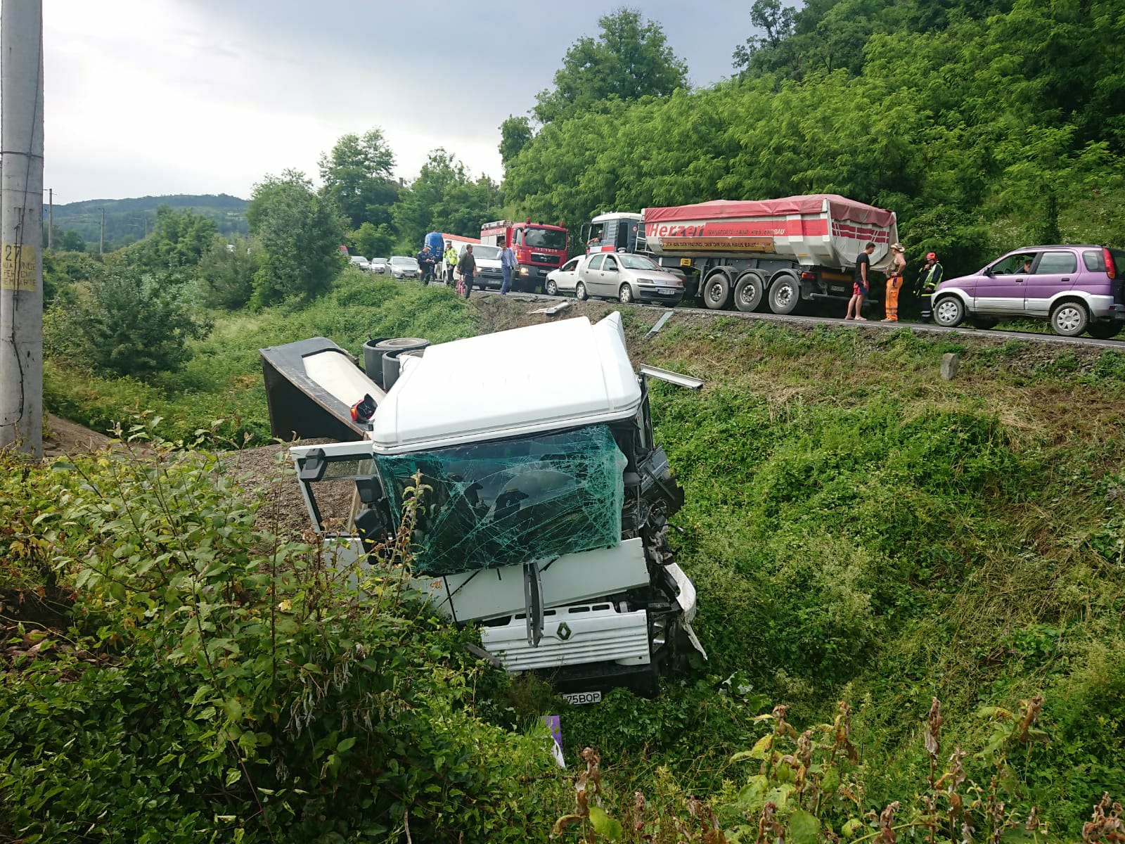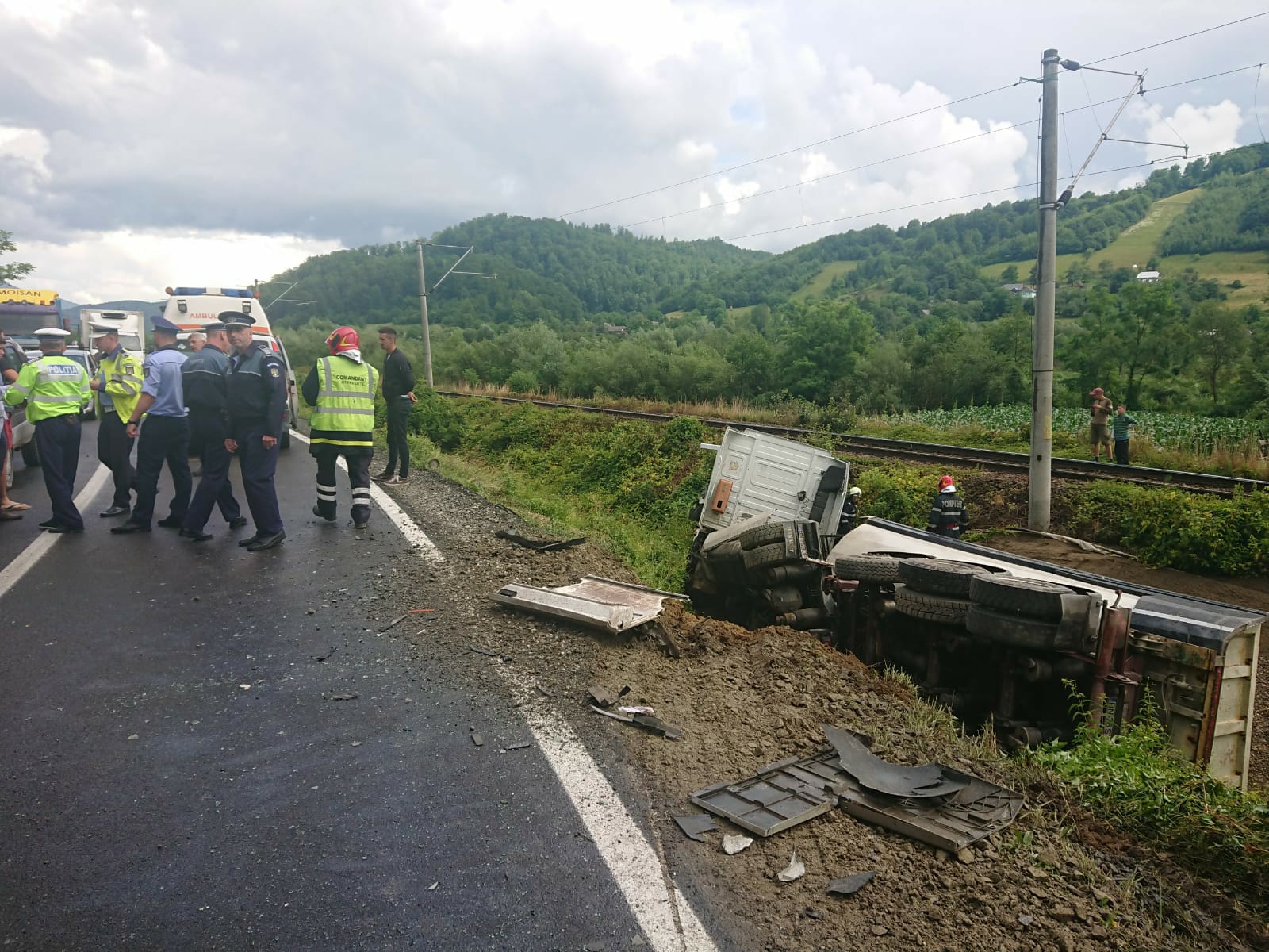 „Pe DN 17 D, la ieșirea din Rebrișoara spre Nepos, un conducător auto de 22 de ani din Rodna, care conducea un autotren, pe direcția de mers Feldru spre Rebrișoara, într-o curbă, a intrat în coliziune cu un alt TIR, condus de un bărbat de 42 de ani din Poiana Ilvei, care circula din sens opus și care, în urma impactului s-a răsturnat în afara părții carosabile. În urma accidentului a rezultat lovirea ușoară a șoferului de 42 de ani. Ambii conducători auto au fost testați cu aparatul etilotest, rezultatul fiind negativ. Se fac cercetări pentru stabilirea cauzelor și împrejurărilor în care a avut loc evenimentul”, a declarat pentru Bistrițeanul.ro, Crina Sîrb, purtătorul de cuvânt al IPJ Bistrița-Năsăud.