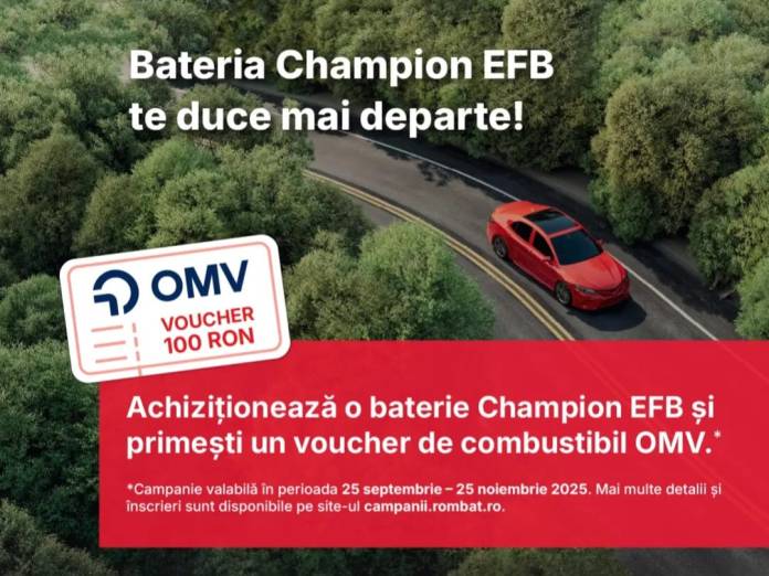 Compania bistrițeană ROMBAT, unul dintre cei mai importanți ambasadori ai României în industria de automotive la nivel mondial, îi răsplătește pe clienți, luna aceasta și în noiembrie, cu o ofertă specială. Achiziționarea unei baterii Rombat Champion EFB aduce un bonus pe măsură: un voucher de combustibil OMV în valoare de 100 RON! PONT: Promoția este valabilă până în data de 25 noiembrie!