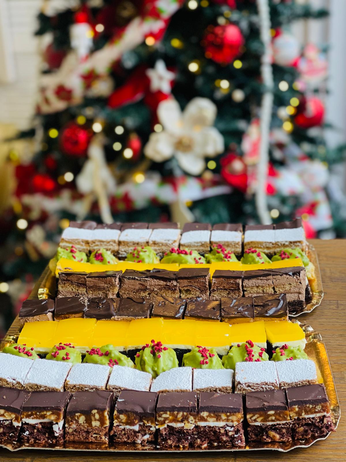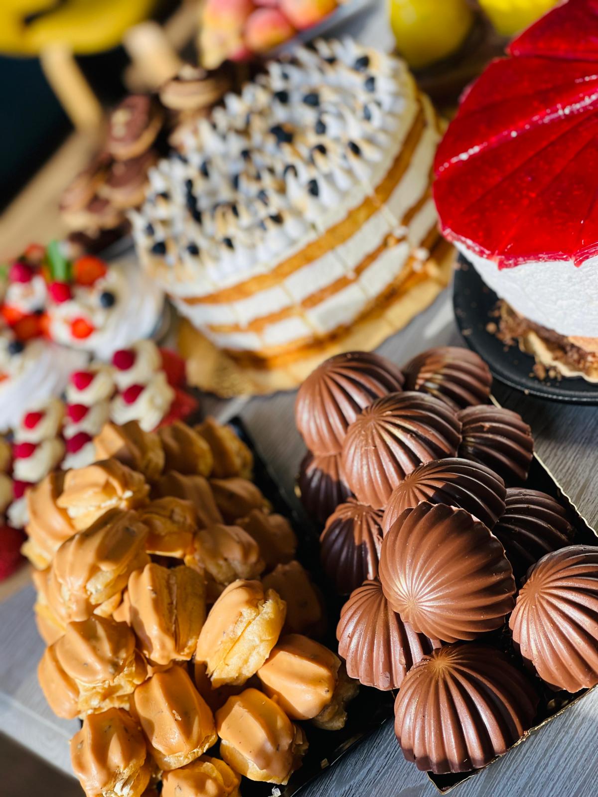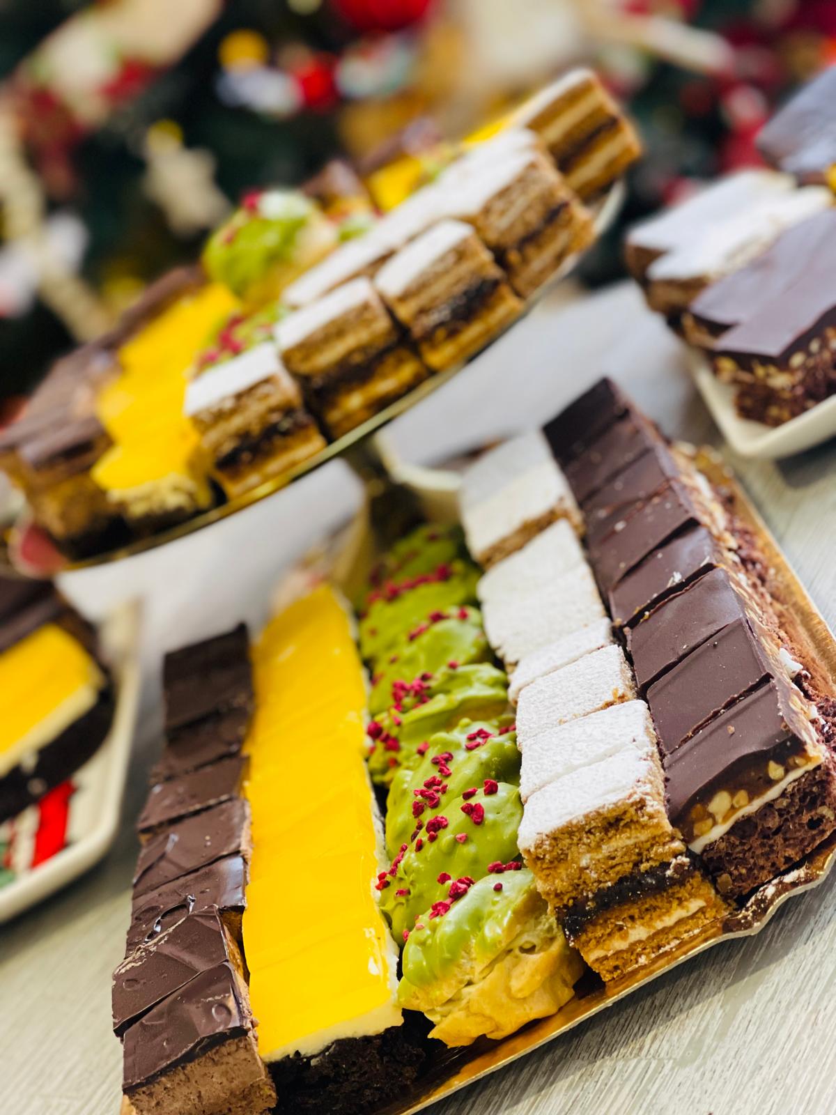 Puteți opta pentru ișlere, saraberne, piersicuțe, MiniPavlove, prăjituri cu fructe, cozonaci pufoși, fursecuri aromate, cutii cu macarons, ciocolată de casă sau îndrăgita ciocolată Dubai.