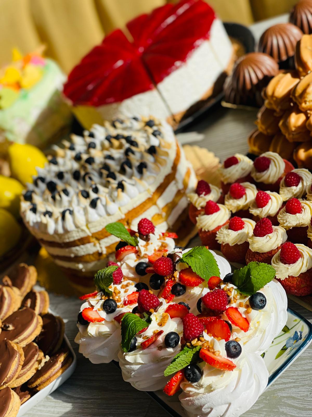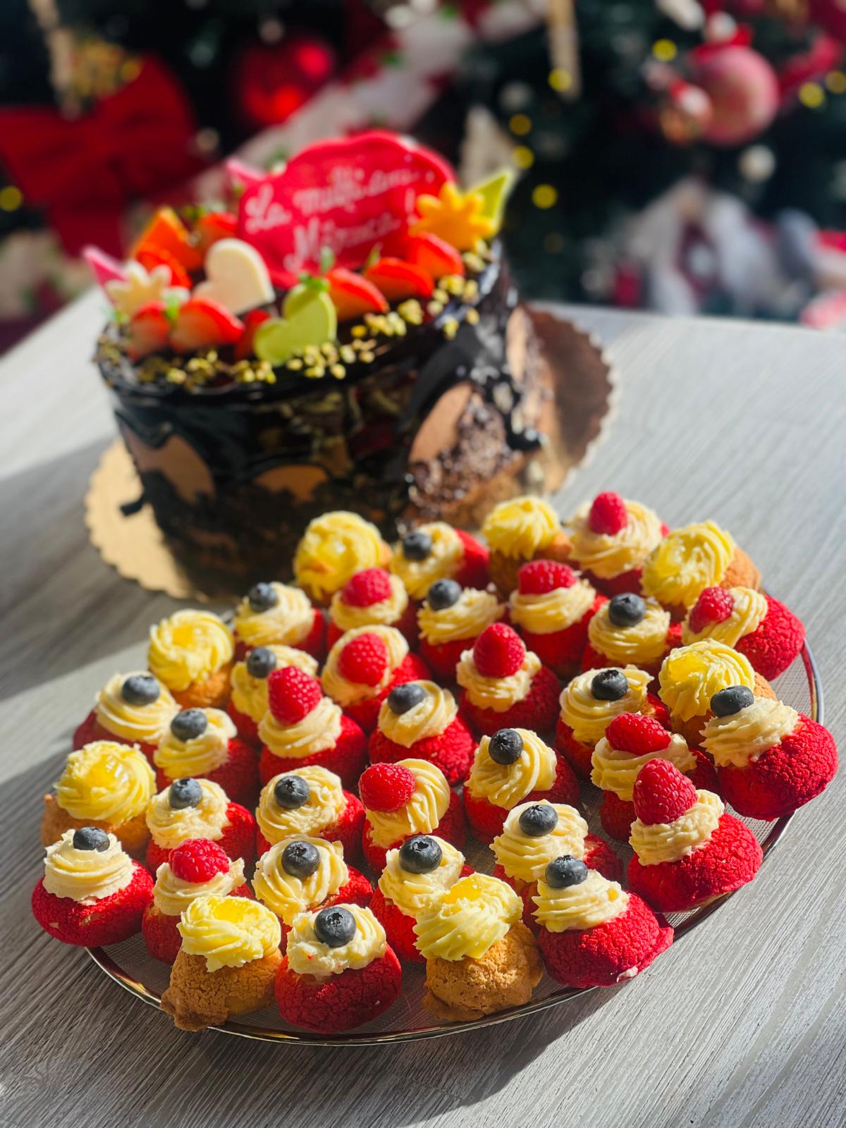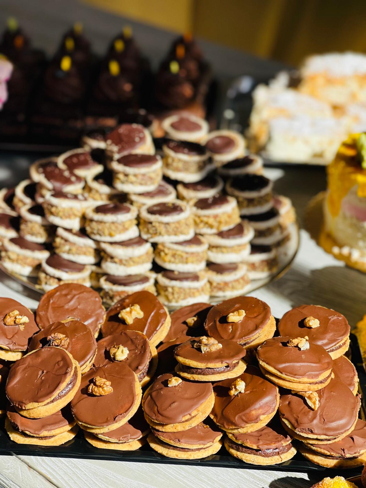Puteți opta pentru ișlere, saraberne, piersicuțe, MiniPavlove, prăjituri cu fructe, cozonaci pufoși, fursecuri aromate, cutii cu macarons, ciocolată de casă sau îndrăgita ciocolată Dubai.